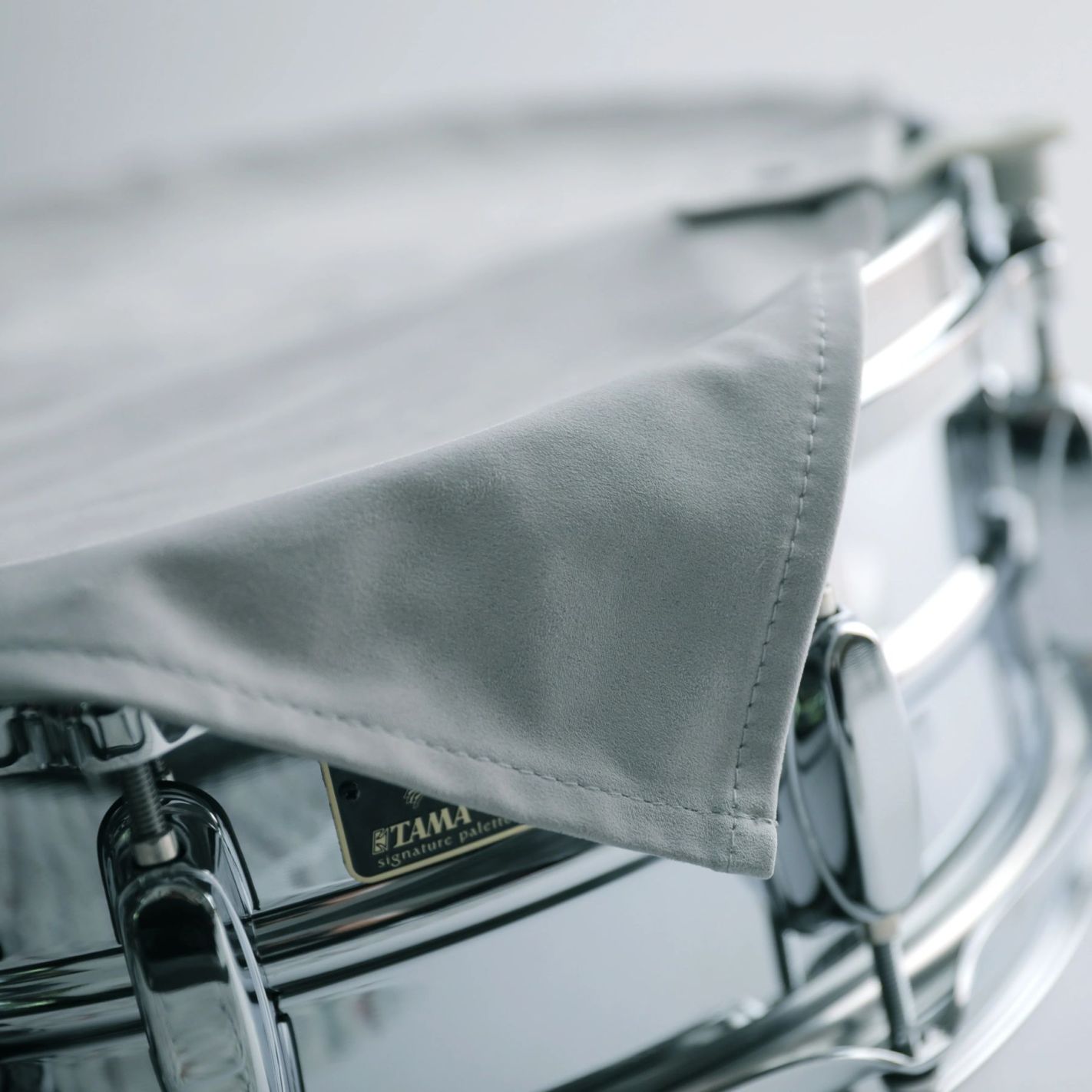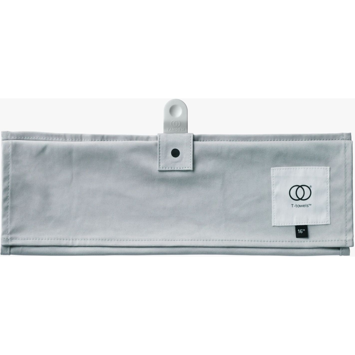 Accesorio de percusión Tandem Drums T-towels 16" Earl Grey - Toalla de amortiguación en T-suede sintético patentado, diseñada para cajas y toms base de 14" a 18". Proporciona un tono cálido y apagado estilo años 60, bajando levemente la afinación, reduciendo volumen y controlando armónicos sin perder sustain natural. Puede usarse plana o doblada, con cierre magnético que asegura consistencia. Se fija a cualquier tensor estándar mediante lengüeta de silicona moldeada. Construcción vegana, libre de PVC y embalaje sin plásticos.
