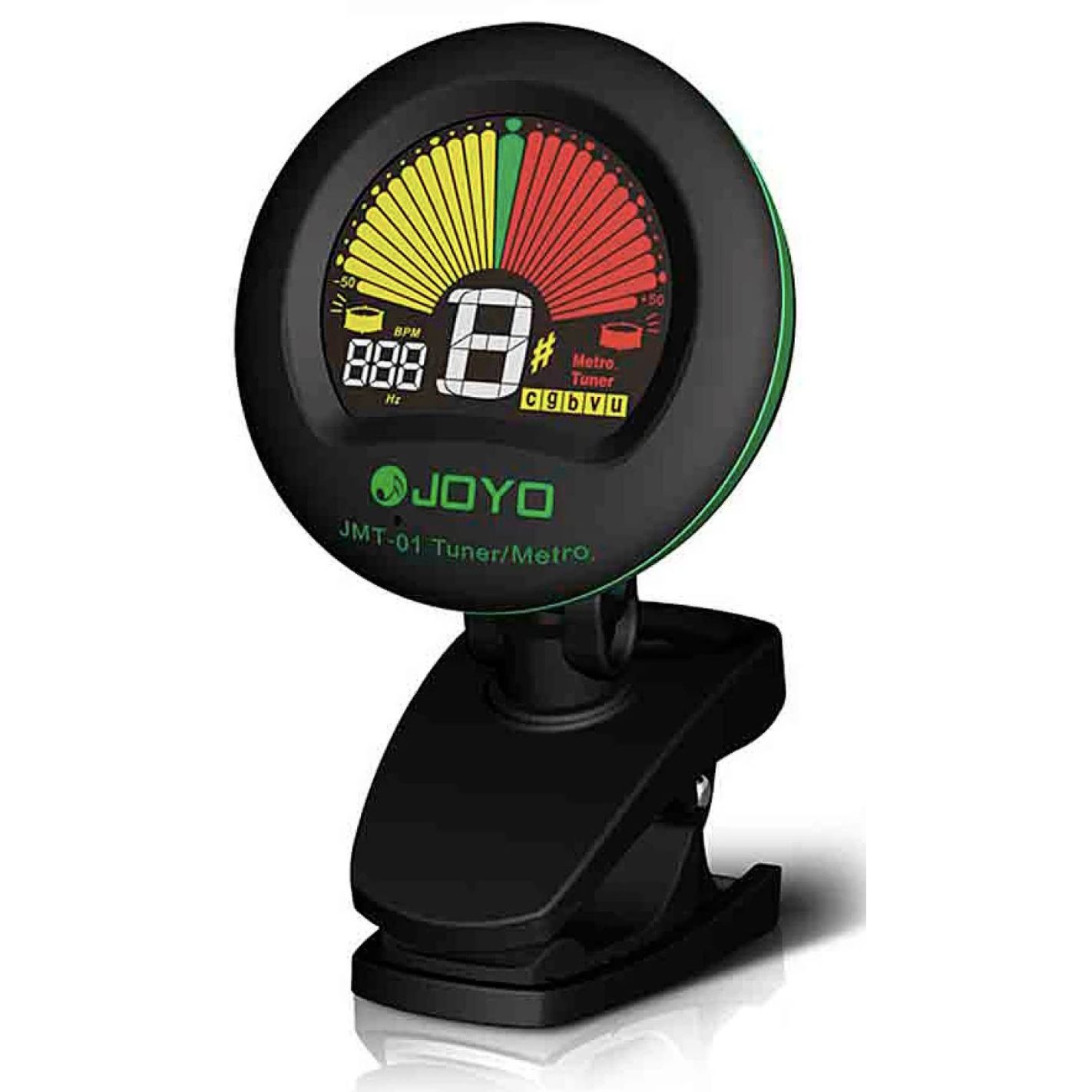 JMT-01-BK METRONOMO AFINADOR DE PINZA JOYO PANTALLA A COLOR - Tempo 30-250 bpm. Tap Tempo 30-250 bpm. A4 Frecuencia 410-450Hz. Afinación Cromática, Guitarra, Bajo, Violín y Ukulele. Rango de sintonización 0A (27,5 Hz)-8C (4186,01 Hz). Modos de afinación MIC, CLIP. Dimensiones 30(L)X50(H)X83(W)mm. Peso 30g. Alimentación Batería CR2032 (1).