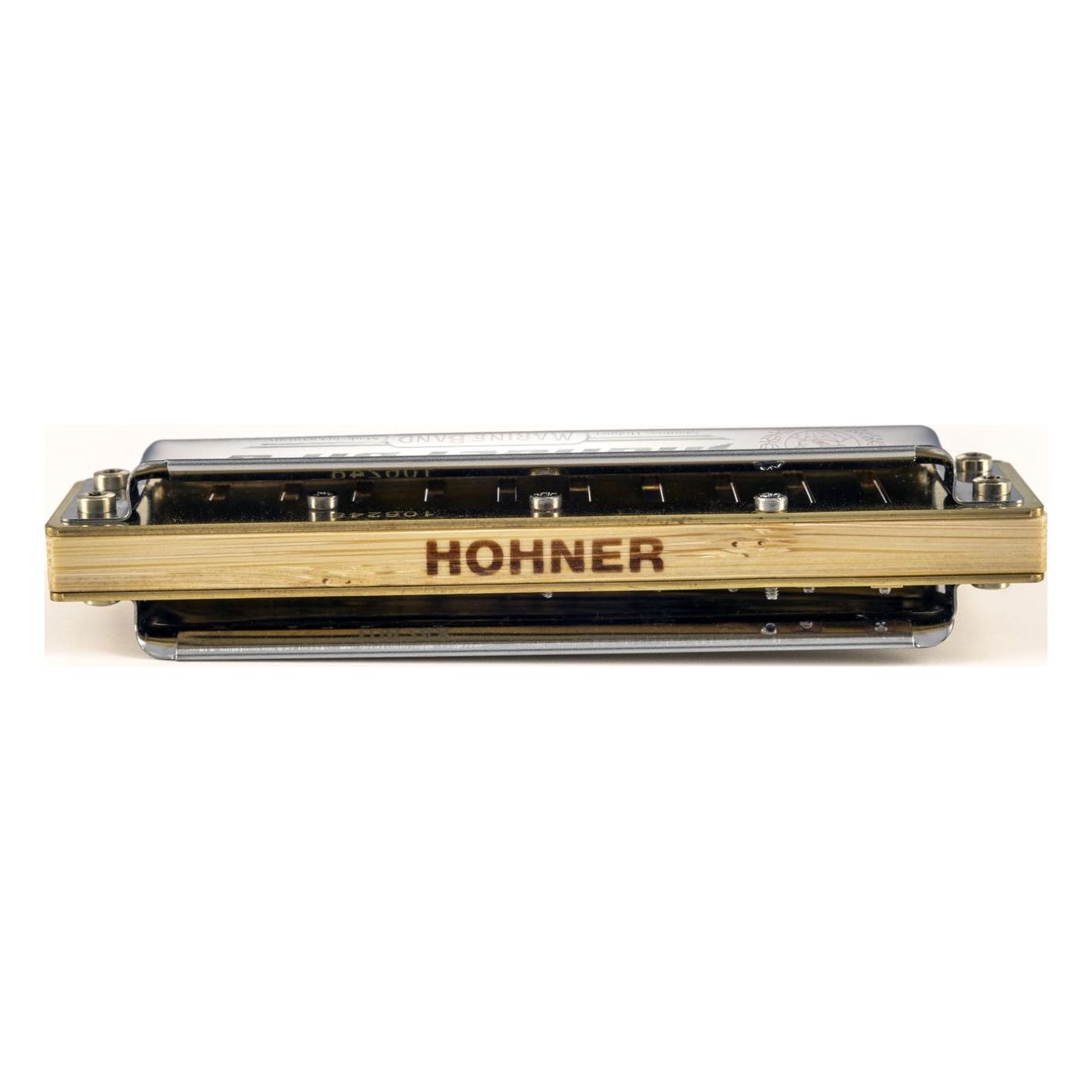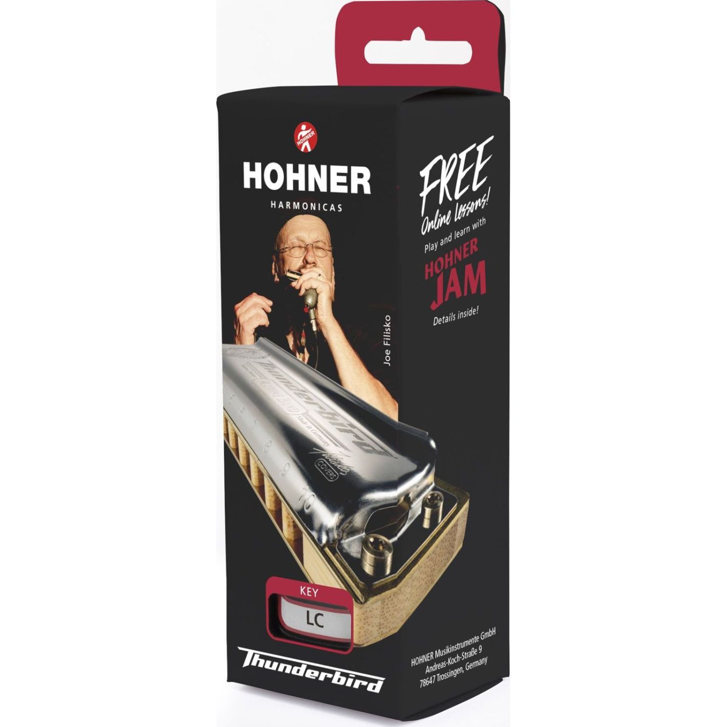 Hohner Marine Band Thund. C Major. Low Octave - Armónica Diatónica Nuevo modelo con tornillos Torx y estuche Snapcase. La Hohner Marine Band Thunderbird es la armónica más grave de la serie Marine Band, afinada una octava más baja que los modelos estándar. Su diseño de cubiertas cónicas evita vibraciones en las notas graves y permite realizar bends con facilidad, mientras que los nuevos perfiles de lengüetas garantizan una respuesta rápida y estable incluso en tonos extremadamente bajos.