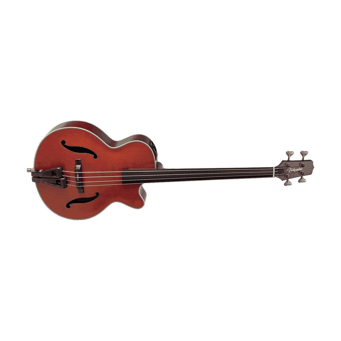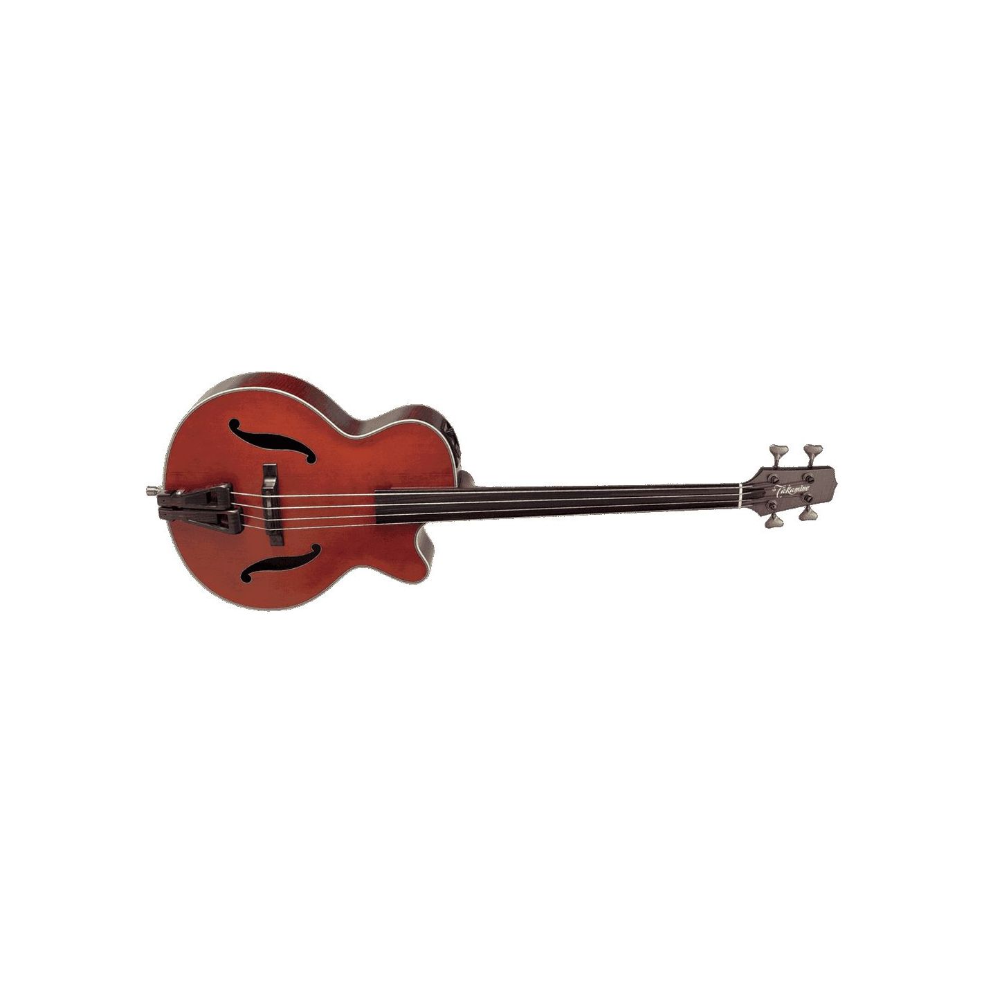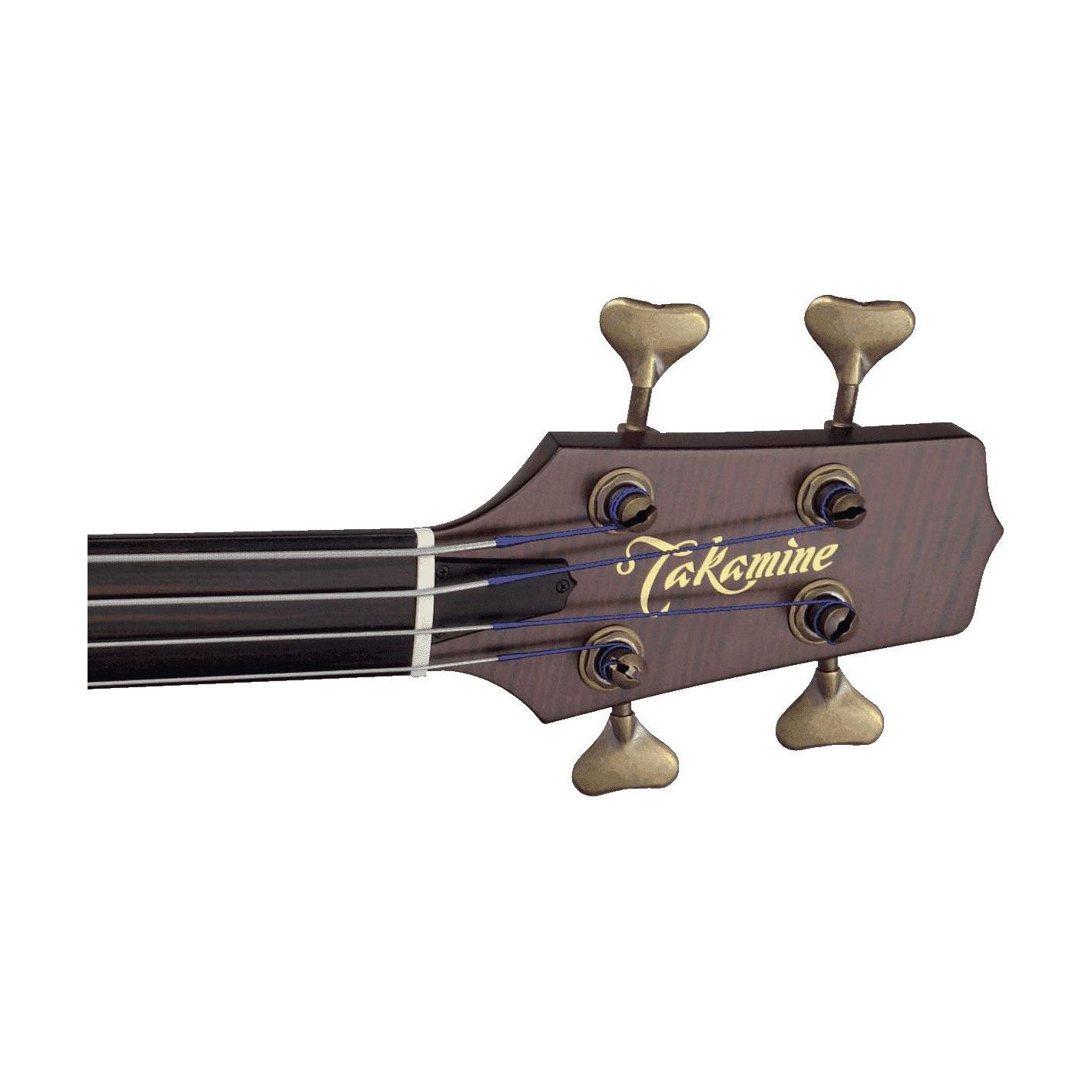 Bajo acústico electroacústico, Takamine DB10, Fretless E/A con F-hole y cutaway - Bajo acústico sin trastes con cuerpo recortado y orificio en F, ideal para sonoridad cálida y articulación precisa. Sistema de preamplificación integrado para amplificación en directo o grabación