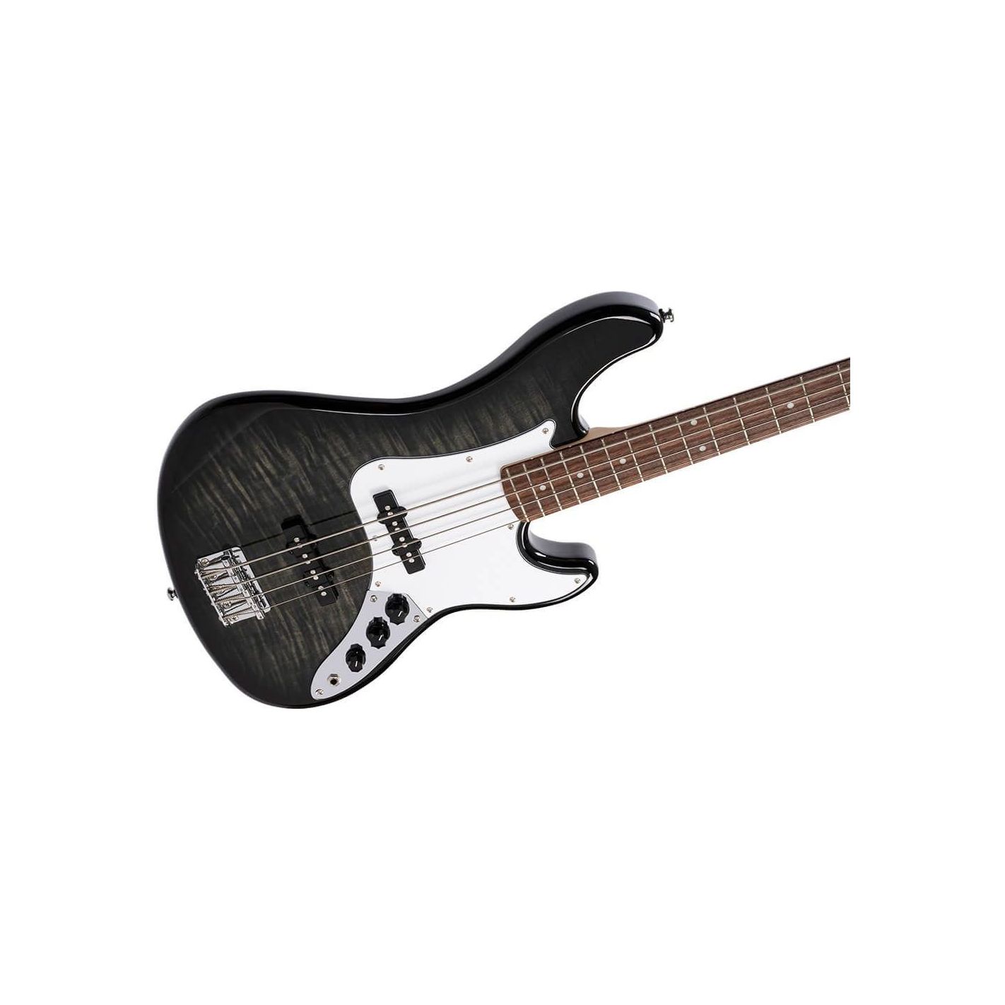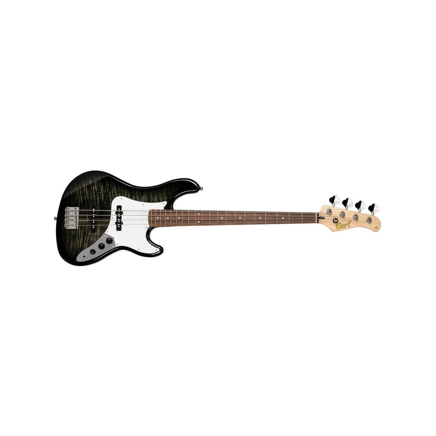 Bajo eléctrico Cort GB24JJ 2TBK - Construcción bolt-on, cuerpo de álamo con tapa de arce flameado, escala de 34" (864 mm). Mástil de arce duro con diapasón de jatoba, radio 9.45" (R240), 20 trastes y cejuela de 38 mm. Pastillas Cort Powersound JJ con electrónica pasiva de 2 volúmenes y 1 tono. Puente vintage y clavijeros open gear. Herrajes en cromo.