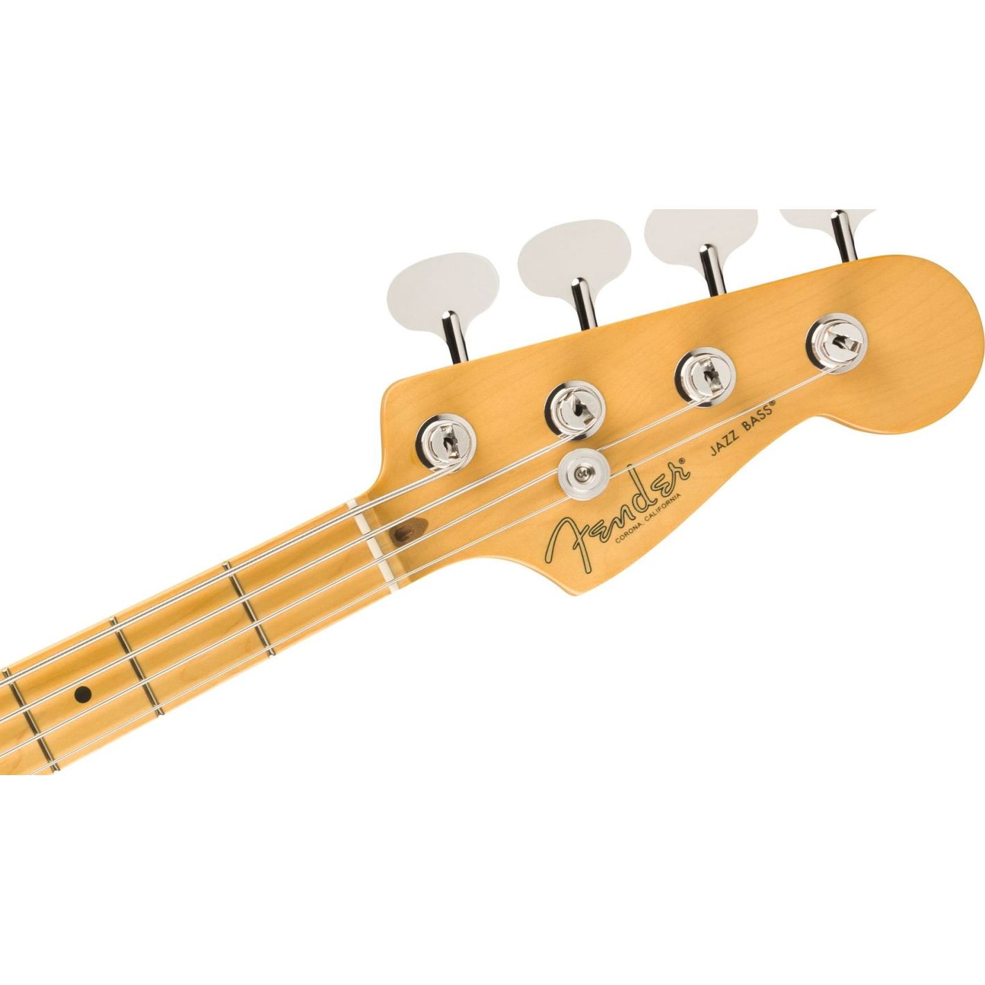 En el apartado sonoro, incorpora dos pastillas Coastline '62 Jazz Bass en configuración SS, que ofrecen un tono articulado, profundo y versátil. Dispone de controles de volumen independientes para cada pastilla y un circuito Master Greasebucket Tone, que permite recortar agudos sin añadir graves no deseados. Su puente de 4 selletas estilo vintage con saddles de acero garantiza sustain y estabilidad, mientras que los clavijeros estilo vintage “lollipop” aportan precisión y estética clásica. El golpeador carey de 4 capas, cubiertas de pastillas negras, botones de control estilo Jazz Bass y herrajes en níquel/cromo refuerzan su carácter profesional.