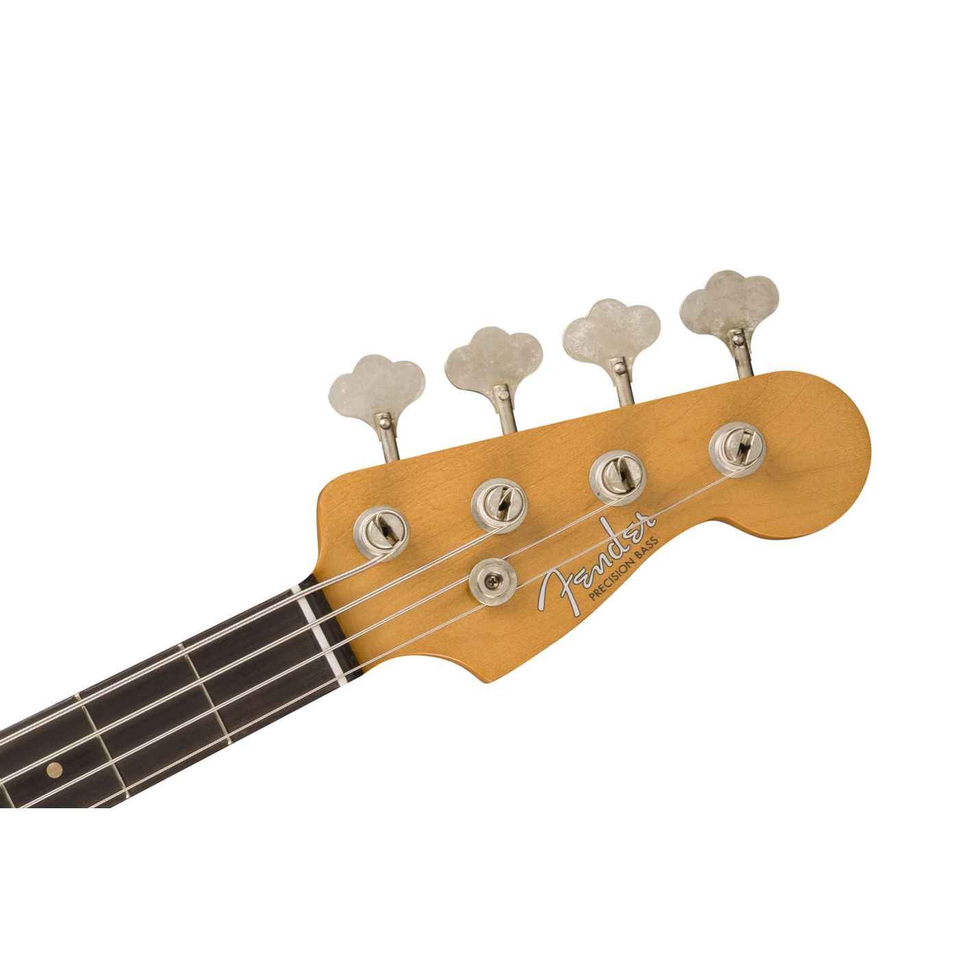 El mástil de arce en perfil “C” early 60s con acabado Road Worn ofrece comodidad al tocar, mientras que el diapasón de palisandro con radio de 7,25" (184 mm), incrustaciones “dot” blancas, 20 trastes vintage tall y escala de 34" (864 mm) proporcionan un tacto clásico y una interpretación precisa. La cejuela de hueso sintético de 44,5 mm aporta estabilidad tonal.
