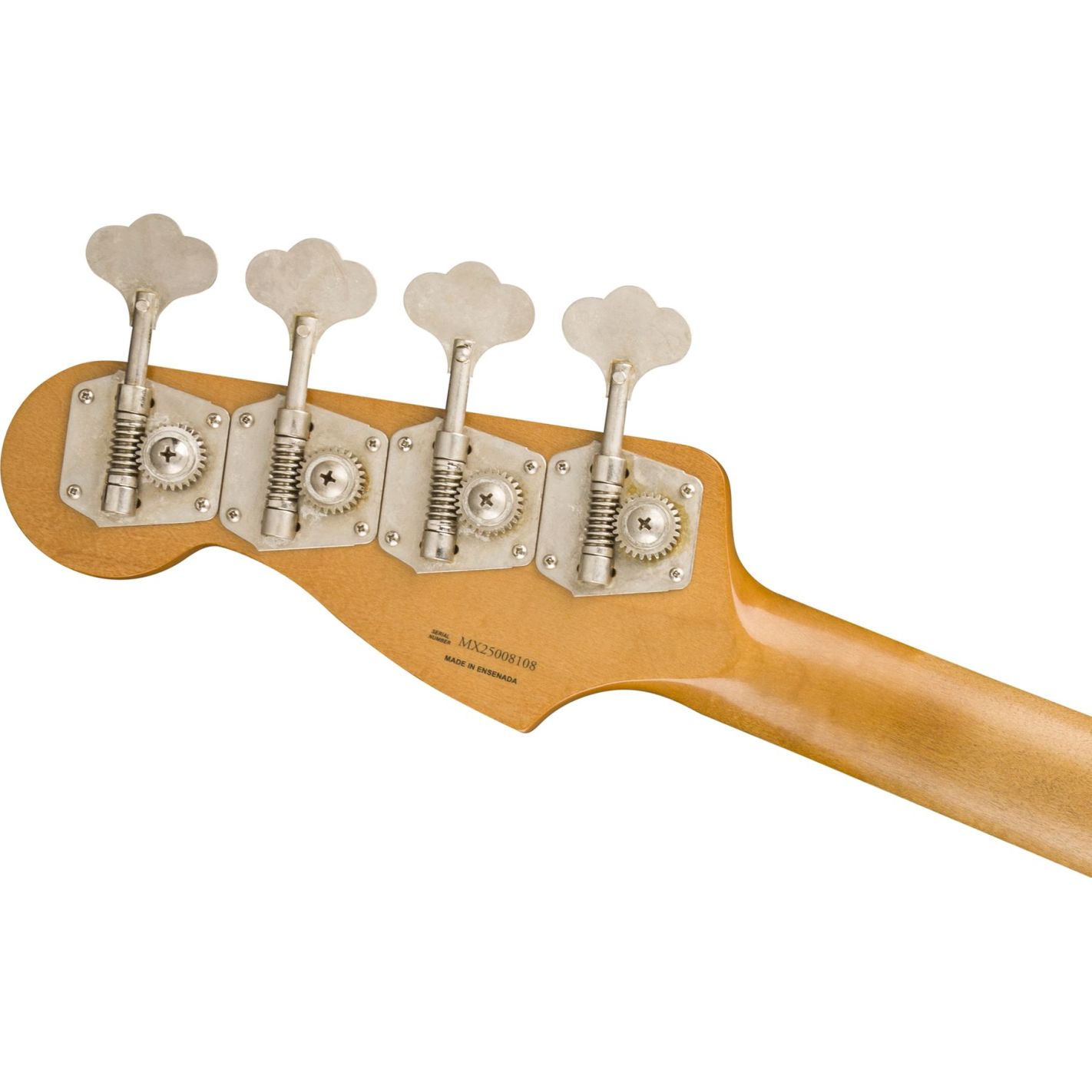 En la parte electrónica, este modelo incorpora una pastilla split single-coil Precision Bass vintage 60s, que entrega el sonido característico: potente, definido y versátil. Sus controles son sencillos y efectivos: volumen maestro y tono maestro. El puente vintage de 4 selletas de acero roscadas garantiza solidez, mientras que los clavijeros vintage abiertos invertidos y el golpeador tortoise de 4 capas completan su estética retro. El hardware niquelado/cromado refuerza su resistencia y estilo. Incluye estuche rígido para su protección.