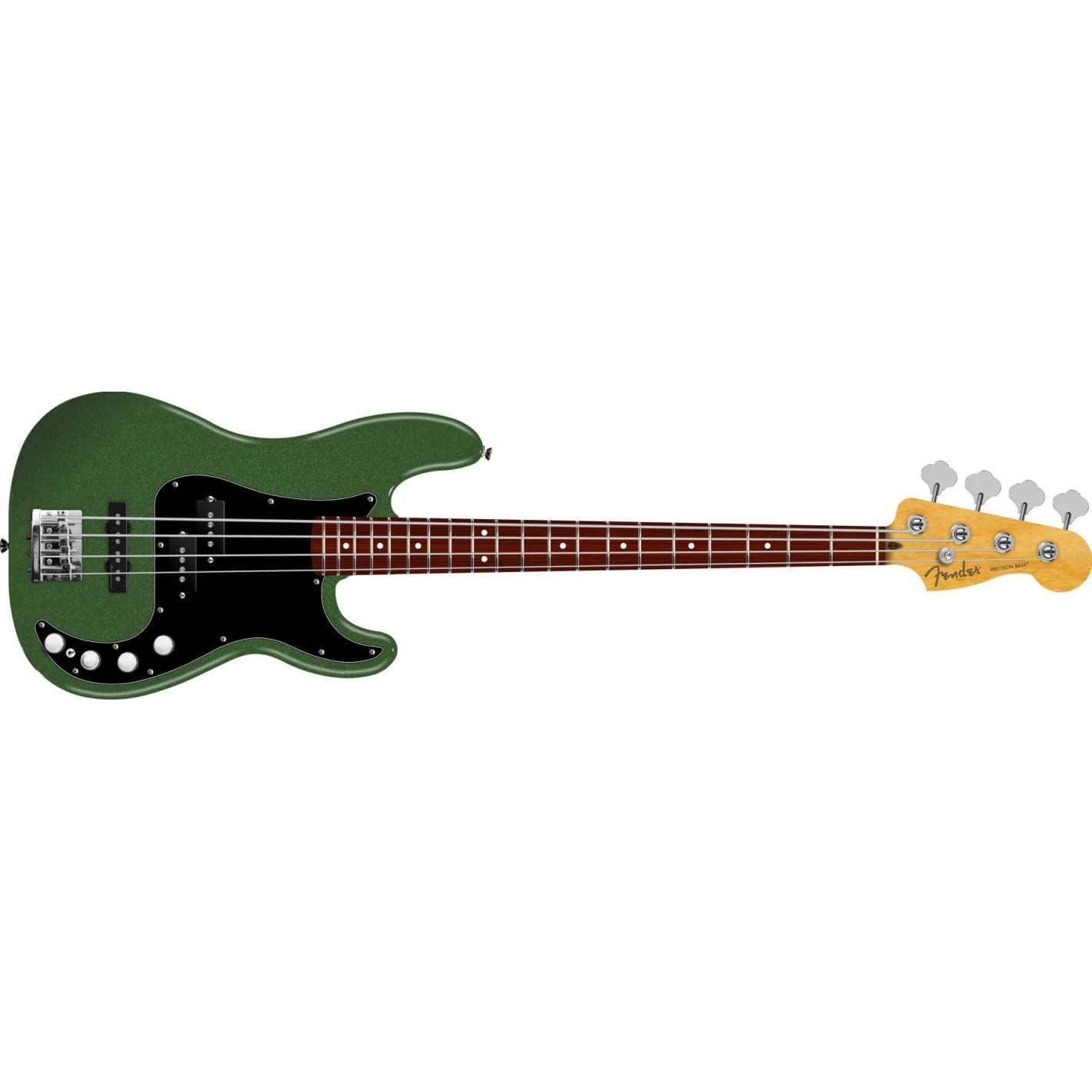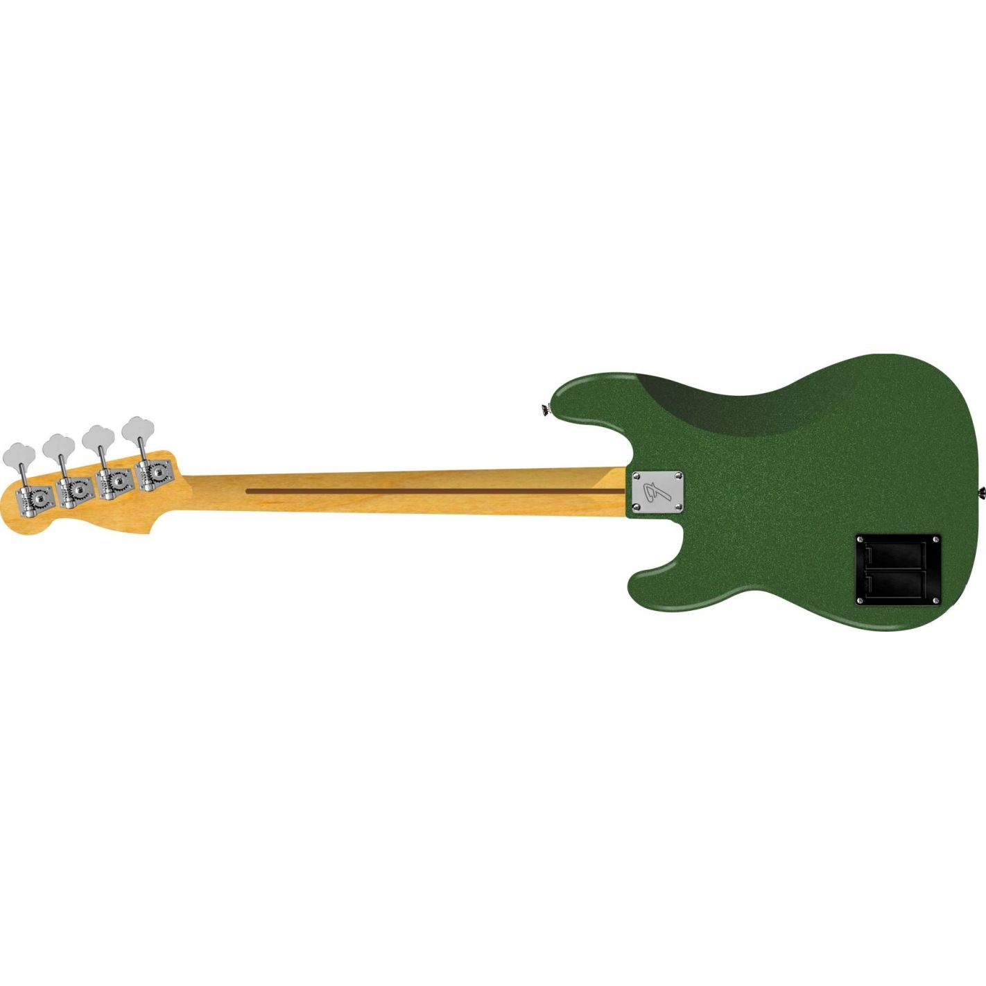 Bajo eléctrico Fender Player II Modified Active Precision Bass, Rosewood Fingerboard, Harvest Green Metallic - Cuerpo de aliso con acabado Gloss Polyester. Mástil de arce con acabado Satin Urethane, perfil Modern "C". 20 trastes Medium Jumbo, radio de diapasón de 9.5" (241 mm), diapasón de palisandro, cejuela de TUSQ de 41.3 mm. Pastillas Player II Noiseless Jazz Bass (puente) y Player II Modified Precision Bass (medio), configuración SS. Controles: Master Volume, Pan Pot, Treble Boost/Cut, Midrange Boost/Cut, Bass Boost/Cut, Active/Passive Tone, Mini Toggle Active/Passive. Puente Fender HiMass con selletas cromadas. Hardware en níquel/cromo. Selector Pan Pot y conmutador auxiliar Active/Passive. Incluye funda Deluxe Gig Bag.