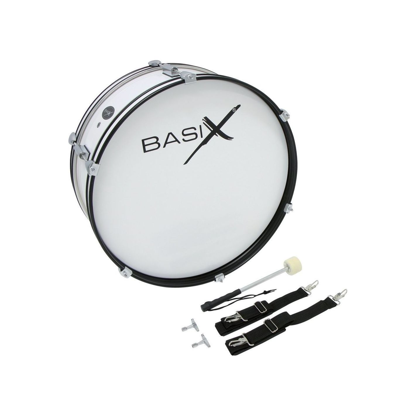 Bombo Junior de Marcha Basix PURE GEWA - 22" x 7", casco de madera de 6 capas con 6 tensores. Incluye correas y batidores. Color blanco.