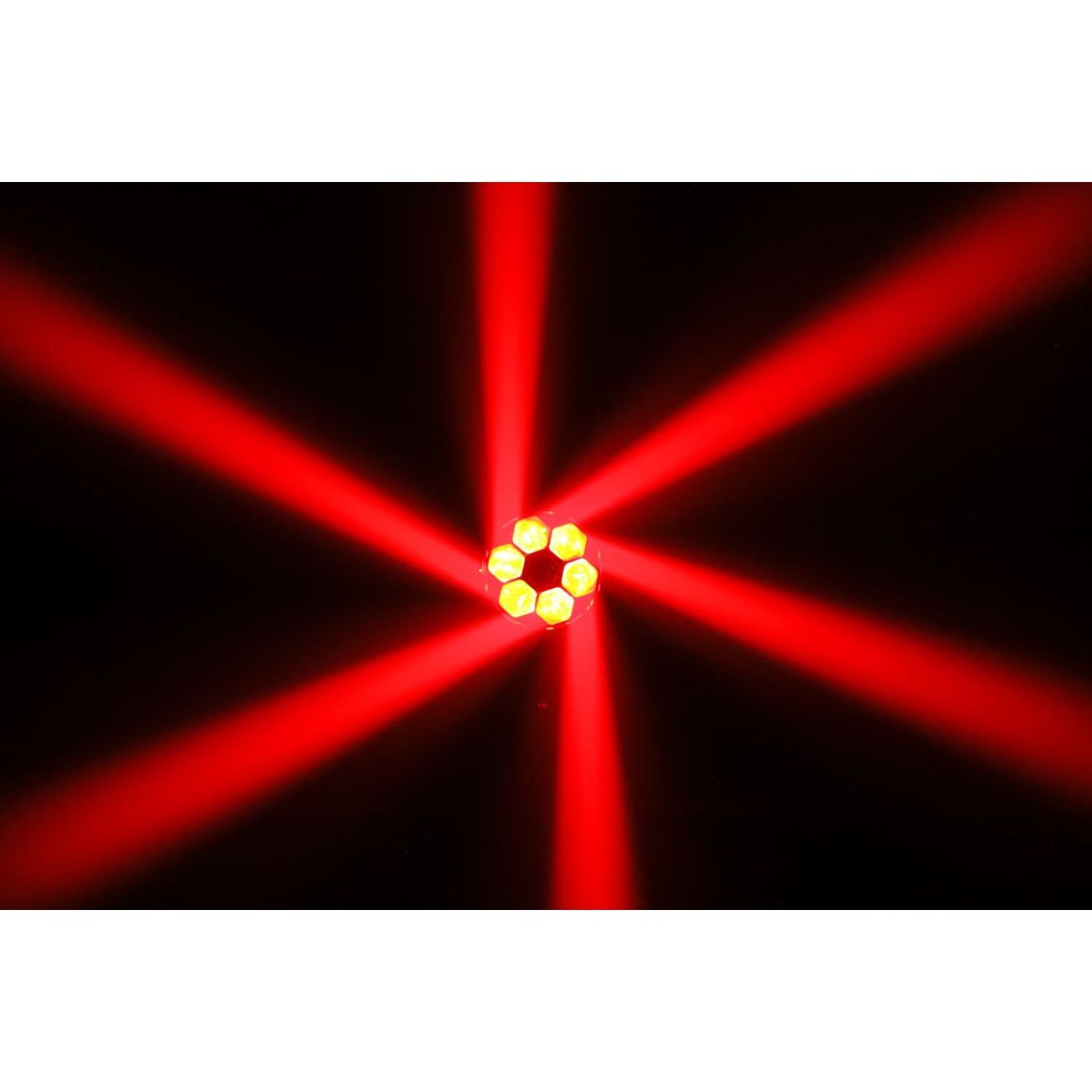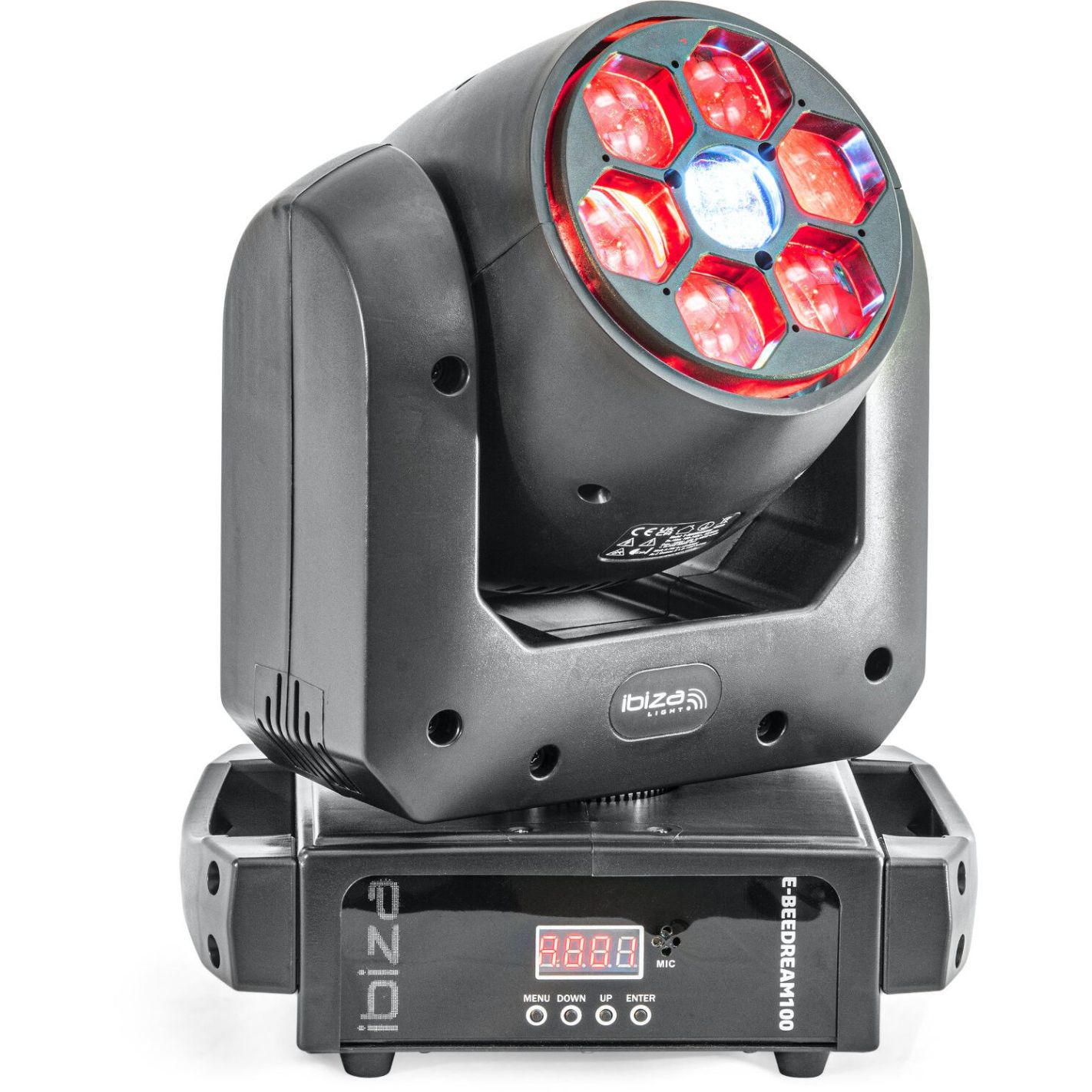 Cabeza dinámica con un potente LED blanco de 100W y 6 LED B-Eye RGBW de 10W. 17 canales DMX. Panel de lentes giratorio. Modos de funcionamiento: Auto, audio, DMX o Maestro/Esclavo. Rueda de 7 colores + Blanco y efecto Rainbow. Movimiento Pan de 540° y Tilt de 190°. Efecto gobo flow. Movimiento Pan de 540° y Tilt de 190°. Estroboscopio 25 destellos/segundo