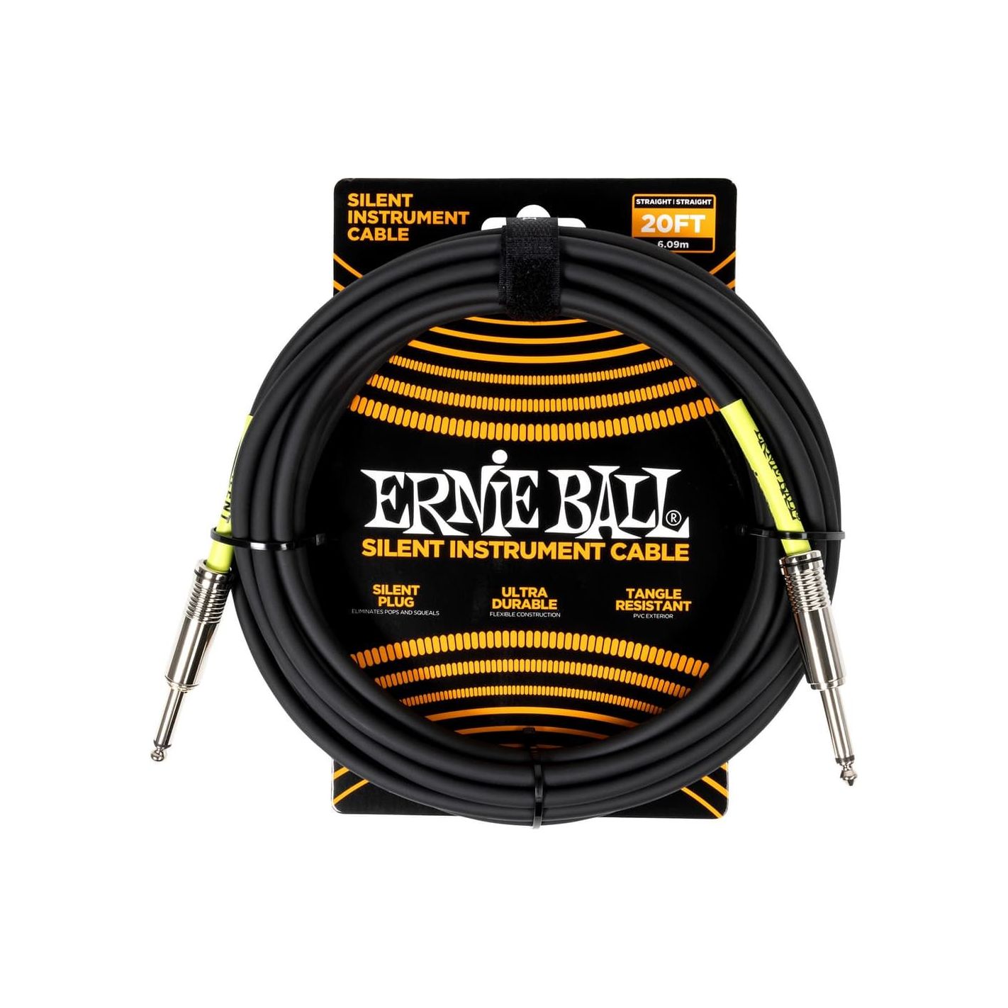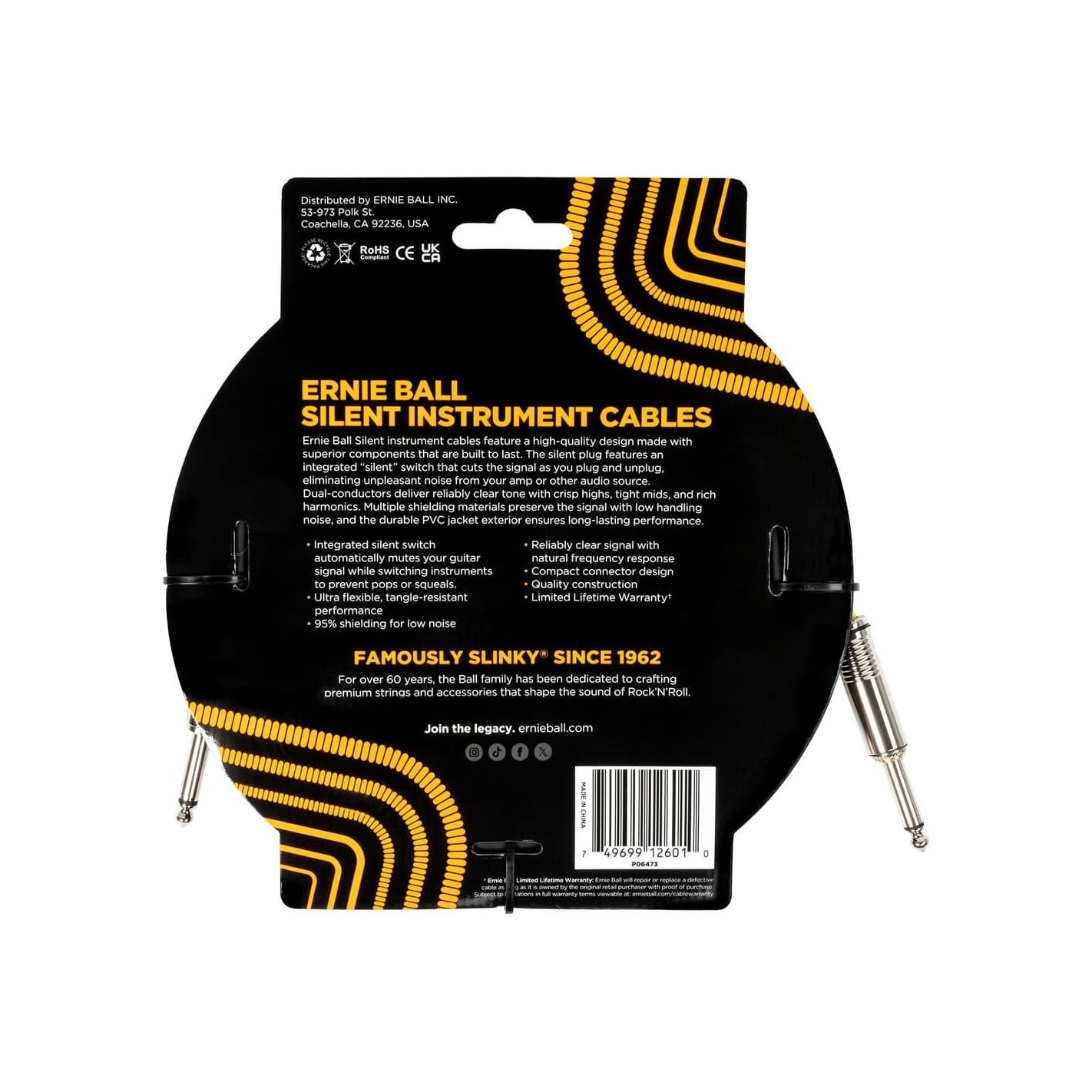 Cable para instrumento, Ernie Ball EEB6473, negro, jack-jack, 6 m - Con interruptor silencioso integrado que elimina ruidos al cambiar de instrumento. Blindaje del 95% para bajo nivel de ruido. Ultra flexible y resistente a enredos, con señal clara y respuesta equilibrada. Conectores compactos y construcción de alta calidad para uso prolongado.