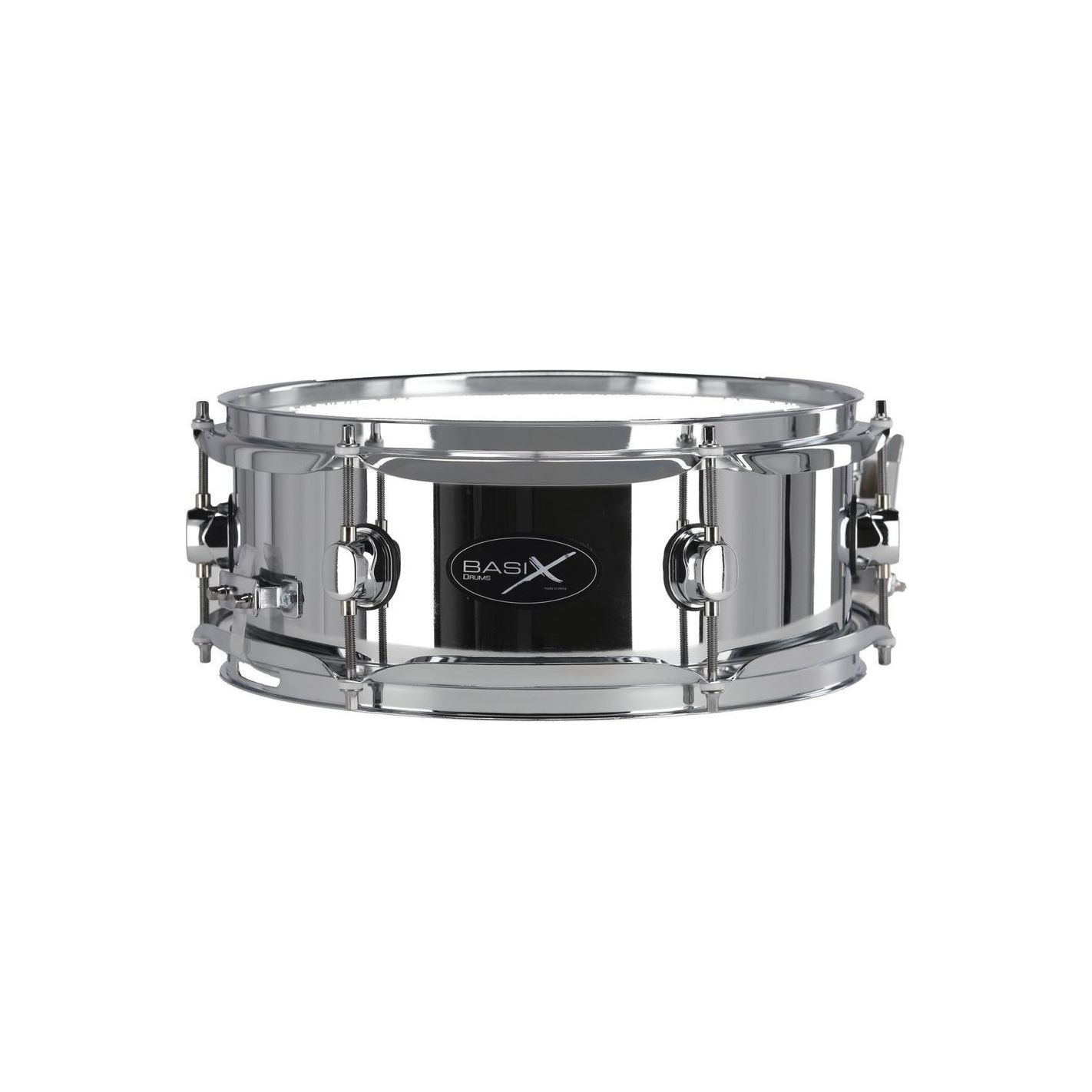 Caja Basix Classic Acero PURE GEWA 12x4,5" - Caja de acero cromado de 12x4,5" con 6 tensores por lado. Información de parche no especificada.