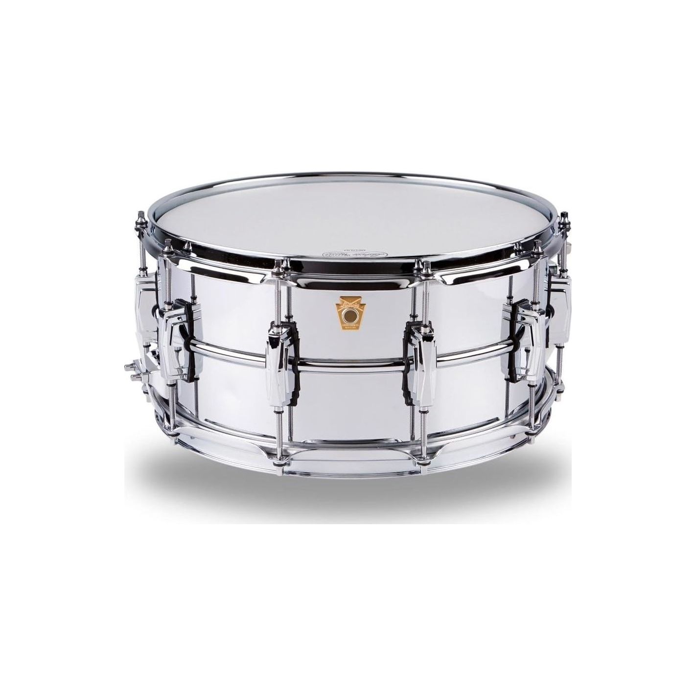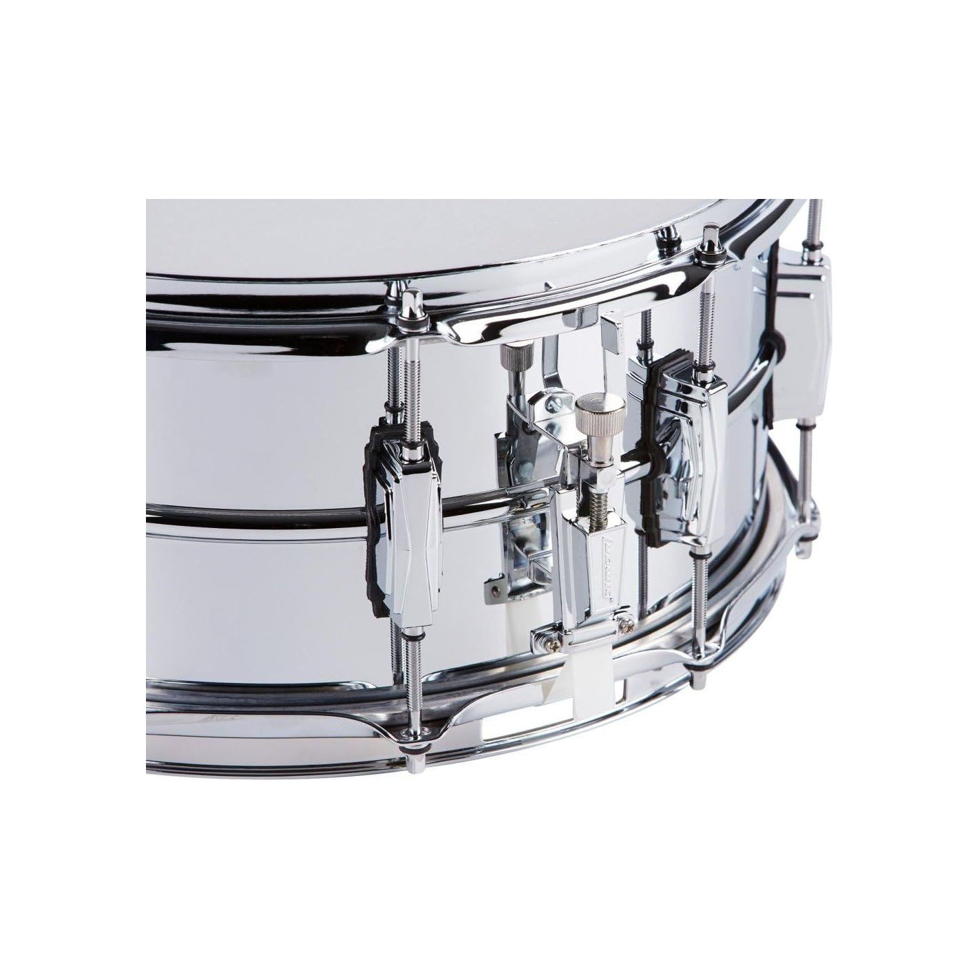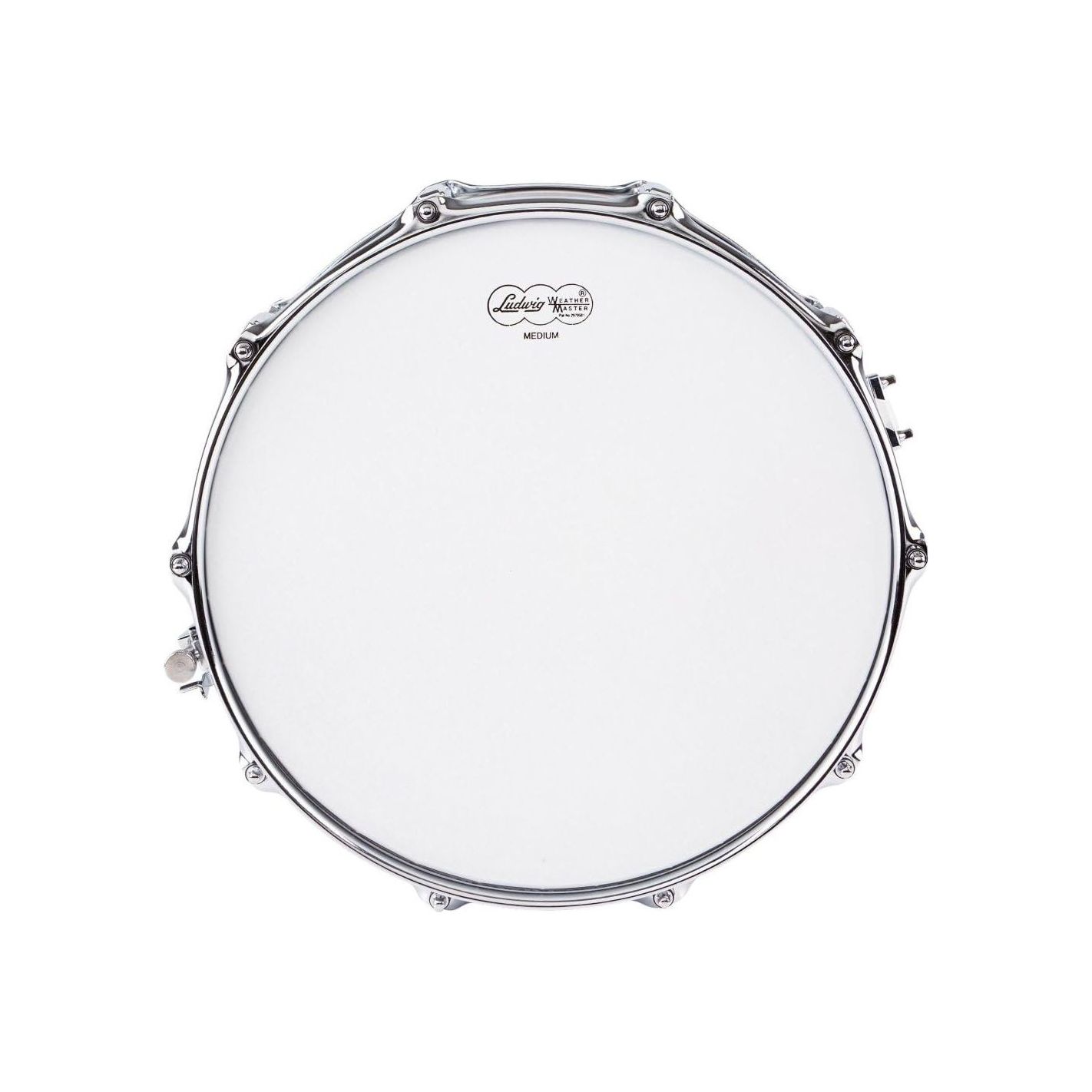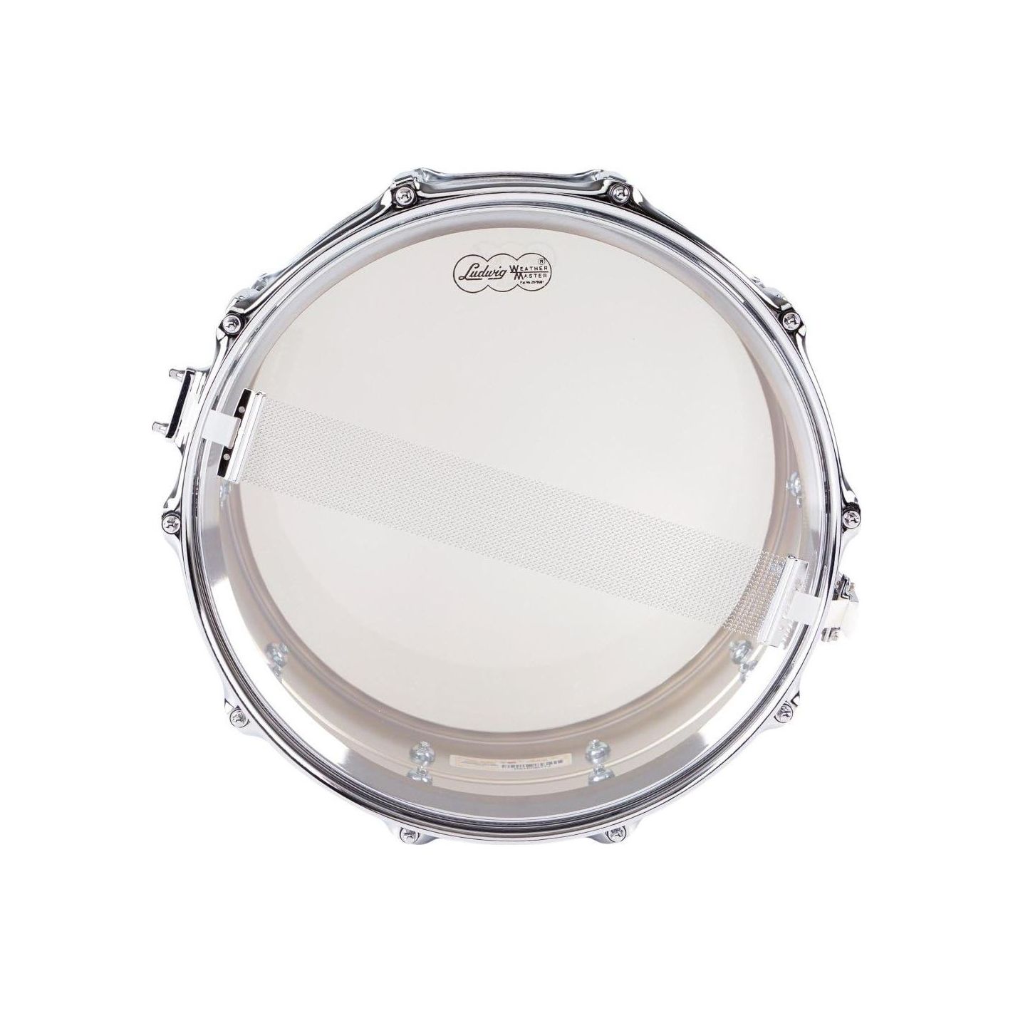 Caja Ludwig LB402B Supra Phonic 14x6.5, Chrome over Brass - Casco de latón sin costuras de 1.2 mm con acabado cromado, diámetro 14", profundidad 6.5", aros de acero triple flanged de 2.3 mm, sistema bordonero P85AC con placa de tope P35AC.