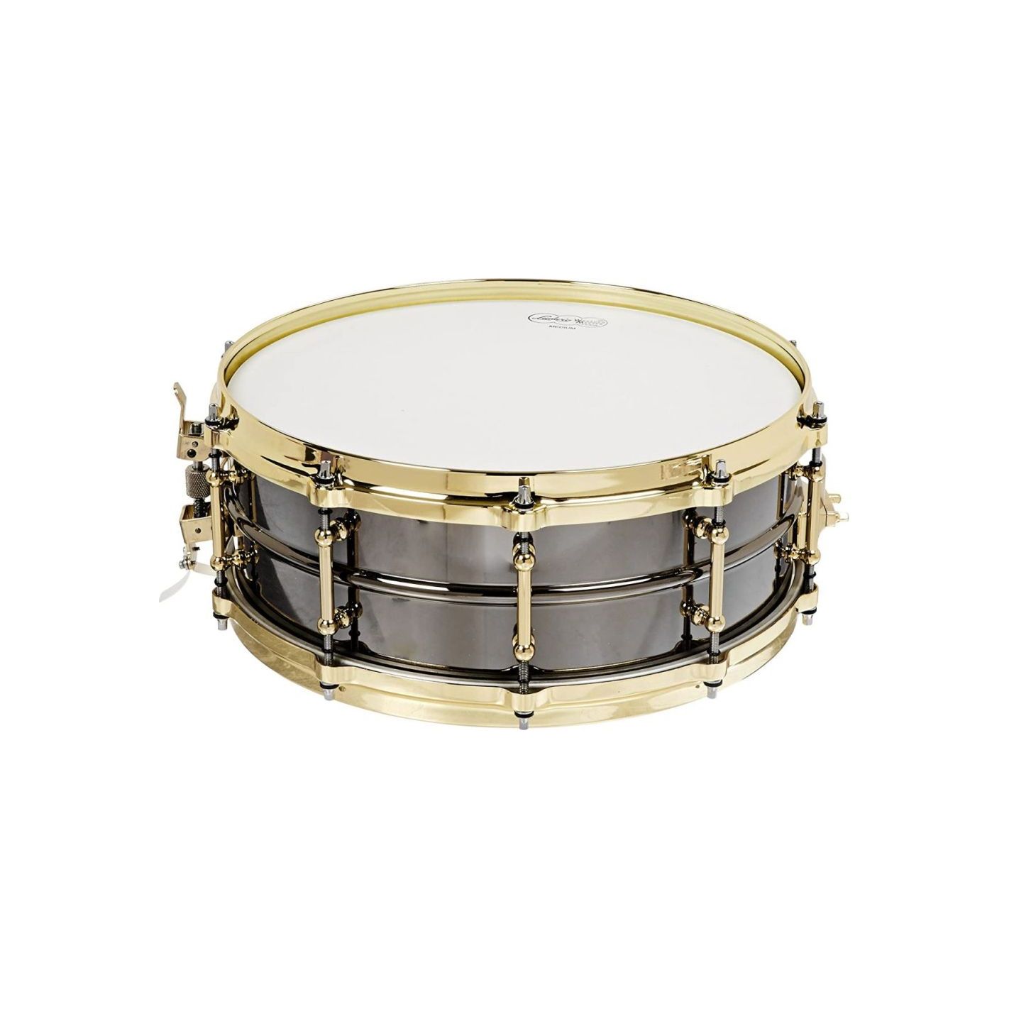 Caja Ludwig LB416BT Black Beauty 14x5, Black Nickel - Casco de latón sin soldadura con acabado cromo negro, diámetro 14", profundidad 5", aros triple flanged de 2.3 mm, 10 puntos de afinación, sistema bordonero P88, bellotas tipo tubo, herrajes cromados, parche bateador Ludwig rugoso, fabricada en Estados Unidos.
