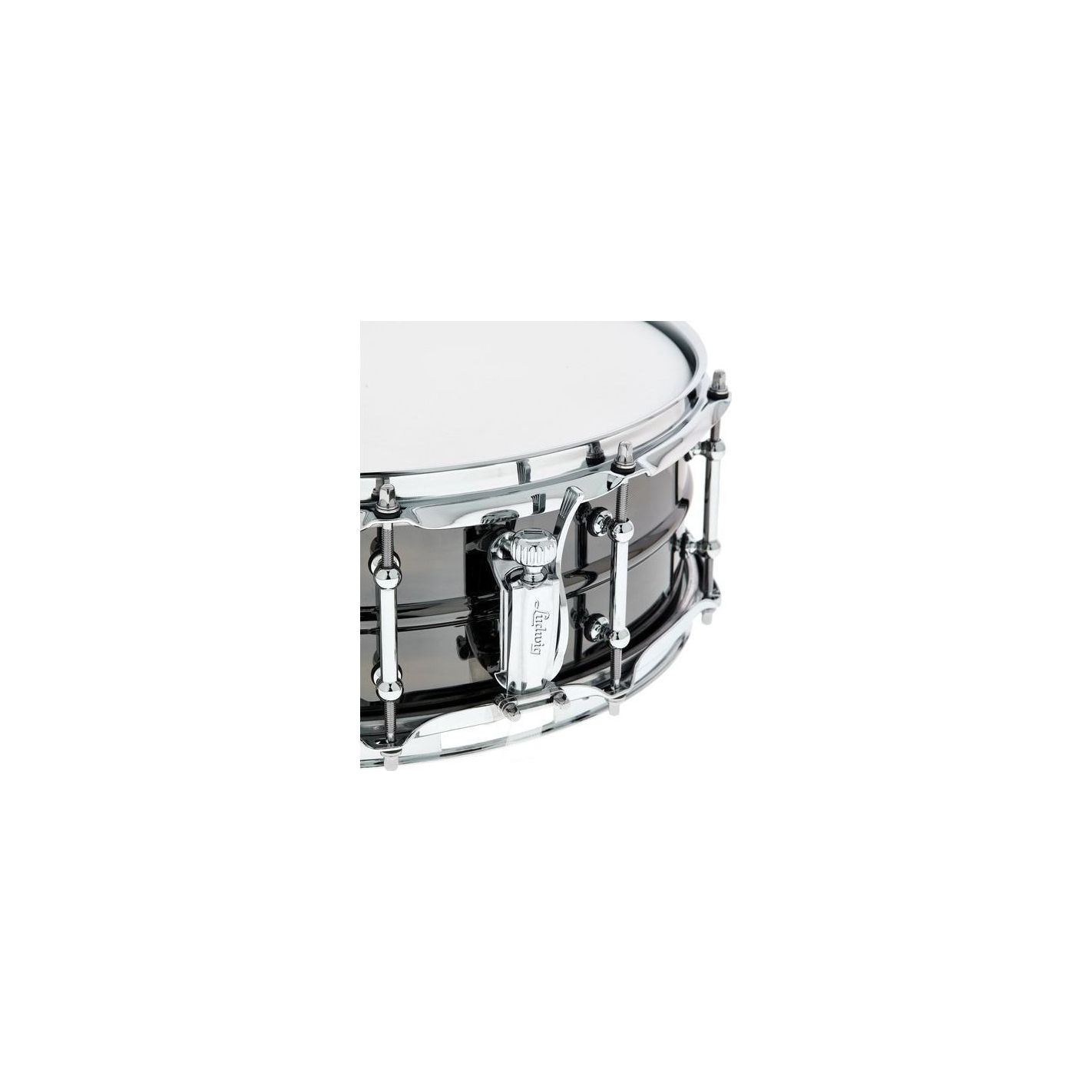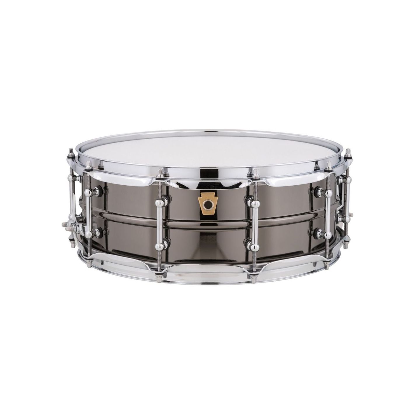 Caja Ludwig LB416T Black Beauty 14x5, Negro - Casco de latón de 1.2 mm con revestimiento en polvo negro, diámetro 14", profundidad 5", aros triple flanged de 2.3 mm, 10 tensadores, sistema de bordonera Supra-Phonic P88AC con cierre P35P, bellotas de tubo, parches Weather Master Medium, fabricada en Estados Unidos.