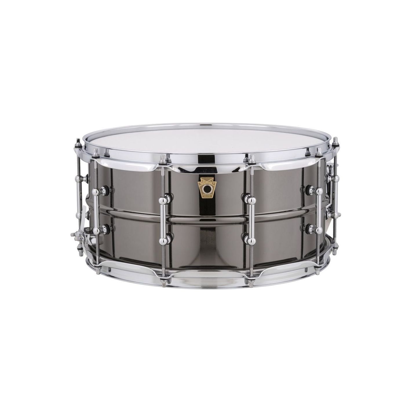 Caja Ludwig LB417T Black Beauty 14x6.5, Black Nickel - Casco de latón sin soldadura con acabado cromo negro, diámetro 14", profundidad 6.5", aros de 2.3 mm, 10 puntos de afinación, sistema bordonero P88AC + P35P, bellotas tipo tubo, herrajes cromados, parche bateador Ludwig rugoso, fabricada en Estados Unidos.