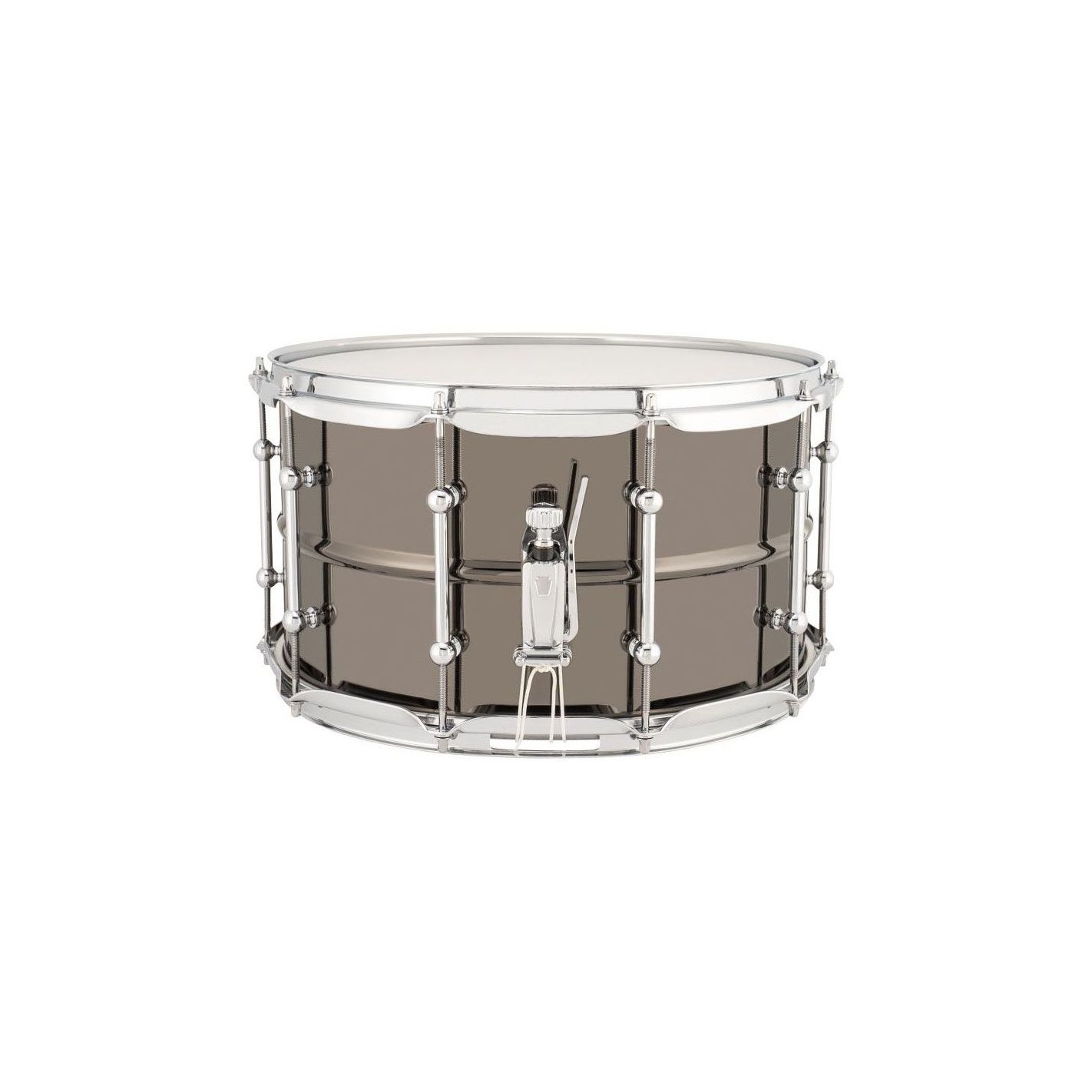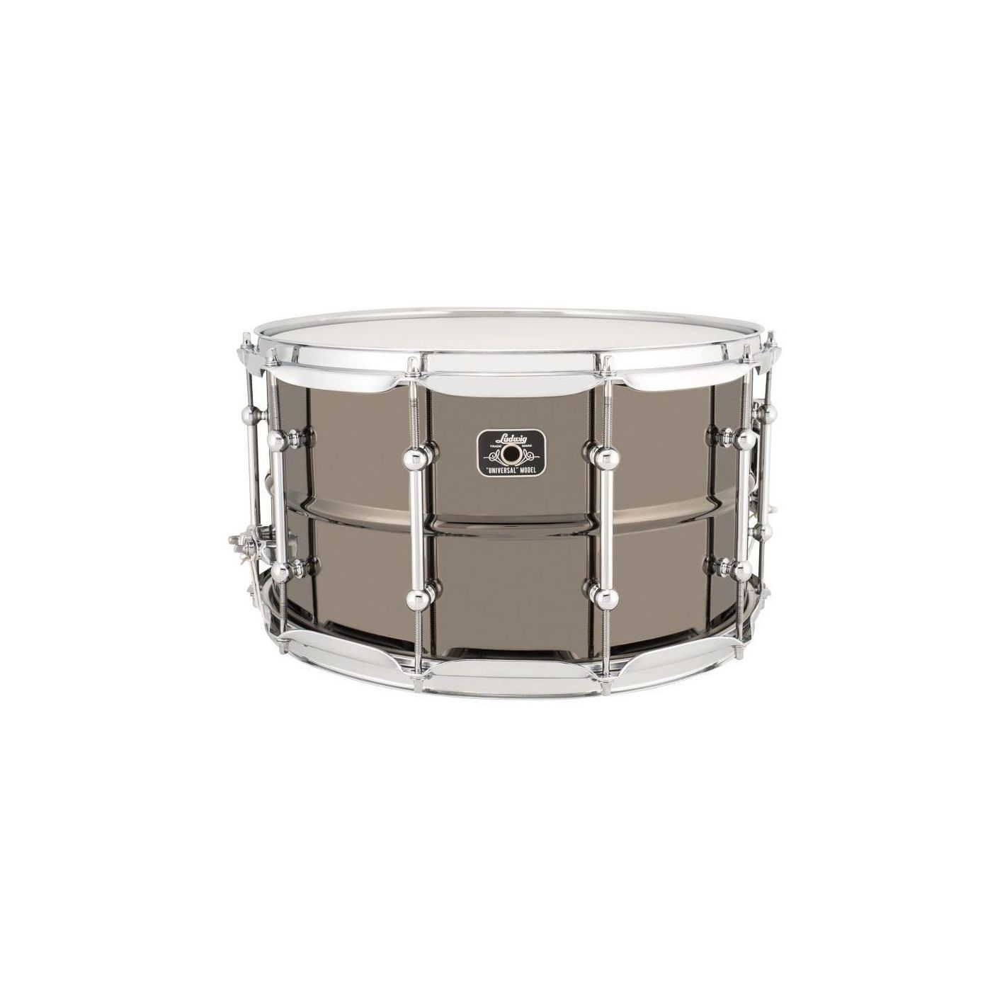 Caja Ludwig LU0814CDIR Universal Brass, Black Nickel - Diámetro 14 pulgadas, profundidad 8 pulgadas, casco de latón, acabado Black Nickel, herrajes cromados, aros Triple Flanged, 10 divisiones de afinación, bellotas tipo tubo, sistema bordonero P88I, contrapartida P35, bordonera de 20 hilos.