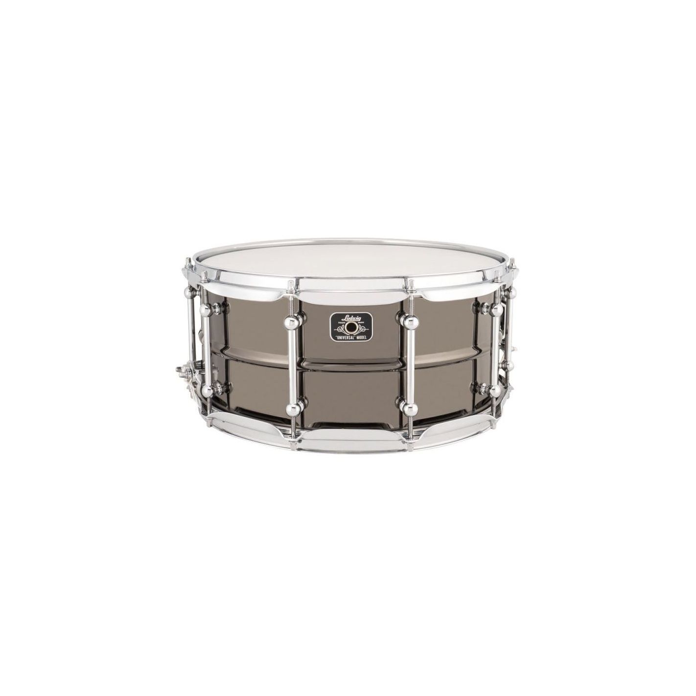Caja Ludwig LU6514CDIR Universal Brass, Black Nickel - Diámetro 14 pulgadas, profundidad 6,5 pulgadas, casco de latón, acabado Black Nickel, herrajes cromados, aros Triple Flanged, 10 divisiones de afinación, bellotas tipo tubo, sistema bordonero P88I, cierre de bordón P35, bordonera de 20 hilos.