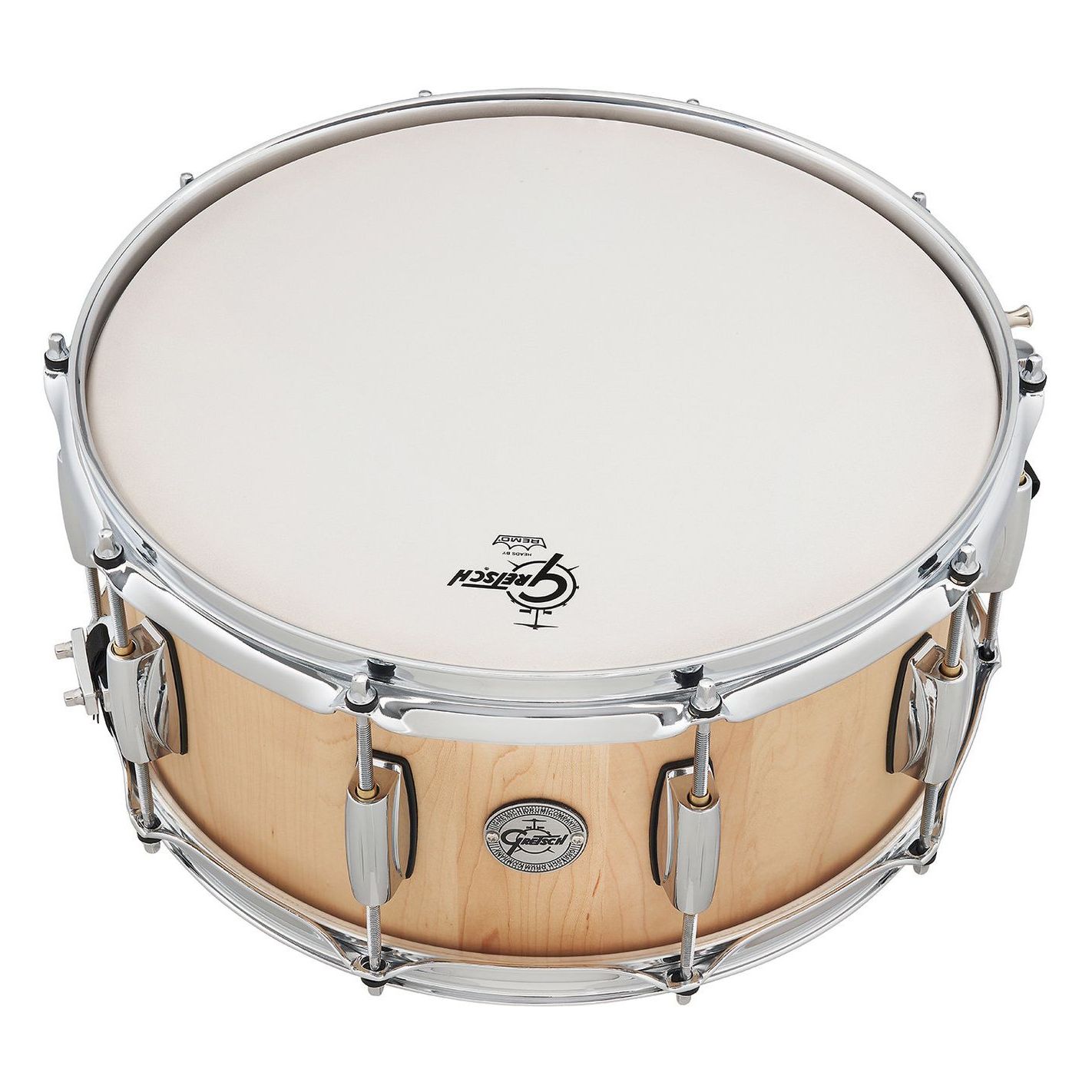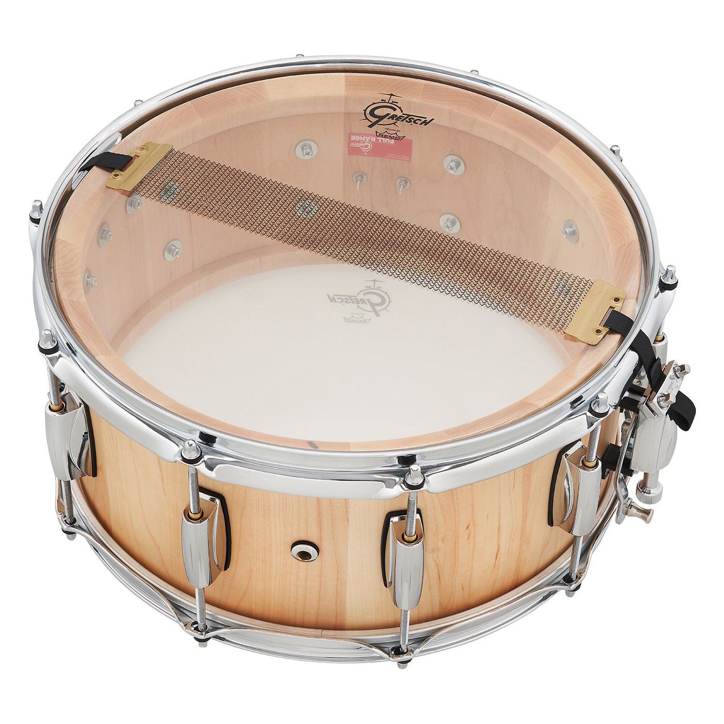 Caja Gretsch Full Range Stave S1-6514-MS 14x6,5 - Casco de arce tipo stave con anillos de refuerzo y acabado natural satinado. Corte a 30º. Aros de acero de 3 mm. Bordonera de 20 hilos. Parches Gretsch fabricados por Remo. Medida: 14" x 6,5".