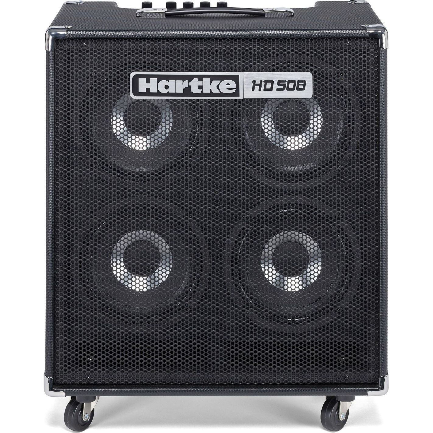 Combo de bajo Hartke HD508 - Amplificador clase D de 500 W, configuración 4x8" con altavoces Hydrive de papel y aluminio, controles Volume, Shape, Bass, Mid y Treble con rango Shape de 100 Hz a 900 Hz, entrada de instrumento 1/4" y auxiliar estéreo 1/8", salidas de auriculares 1/4" y DI XLR, loop de efectos, dimensiones 551 x 508 x 305 mm, peso 22,2 kg, ruedas incluidas.