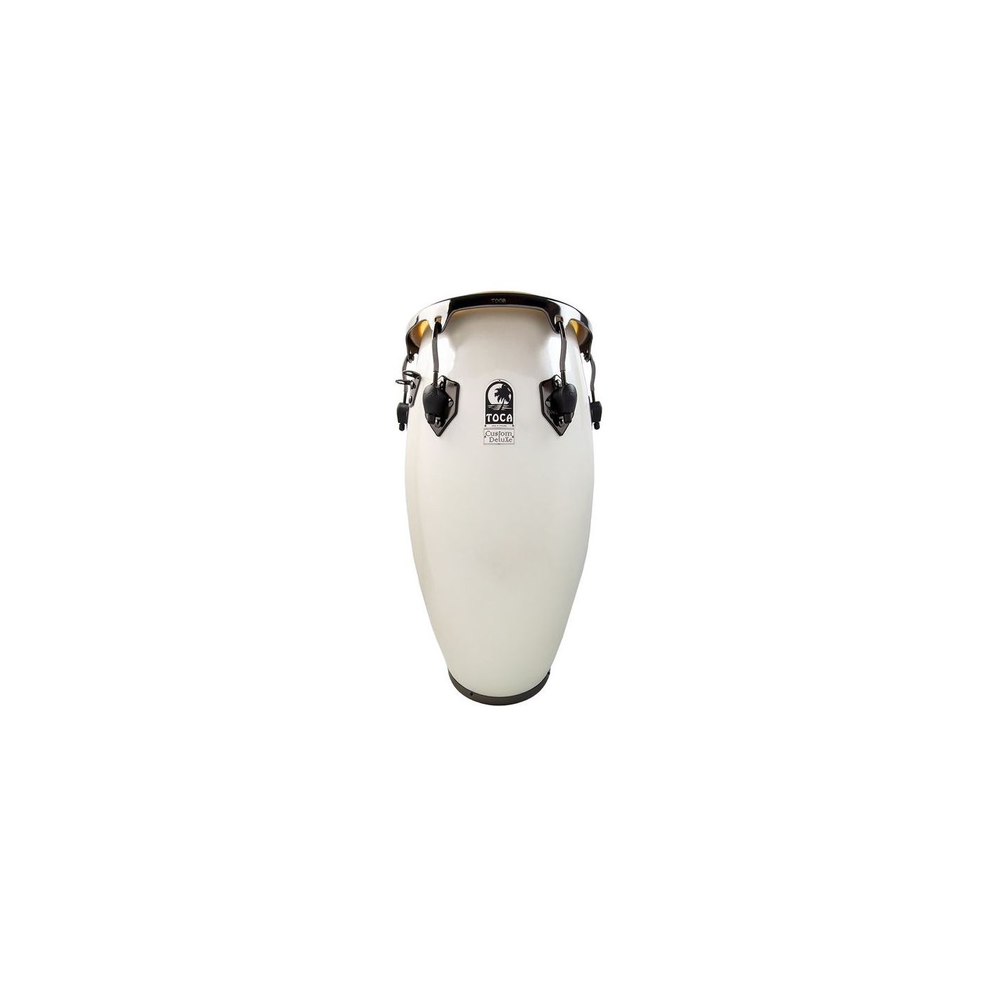 Conga Fiberglass Magarita Blanca Toca 4611-3/4FMB, White Luminescent - Conga de 11,75" y 30" con casco de fibra de vidrio. Parche de piel natural de bisonte, aros Easy Play Hoops y herrajes black chrome con 6 tensores. Diseño apto para escenario y estudio.