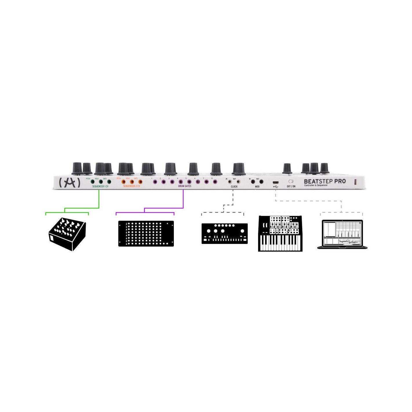 B-Stock (Ex-Demo) - Controlador, secuenciador de directo y herramienta de composición de altas prestaciones en un solo dispositivo compacto y con amplias opciones de conexión para controlar el proceso creativo en el estudio o el directo. 2 secuenciadores por pasos monofónicos , 64 pasos por secuencia - Nota, velocidad y tiempo de gate definibles por paso - Ligadura - Secuenciador de batería de 16 pistas - Controlador MIDI con controles totalmente configurables. Envío de MIDI CC, datos de nota y cambio de programa. 16 Proyectos de 16 x 2 secuencias, 16 secuencias de batería y mapa de