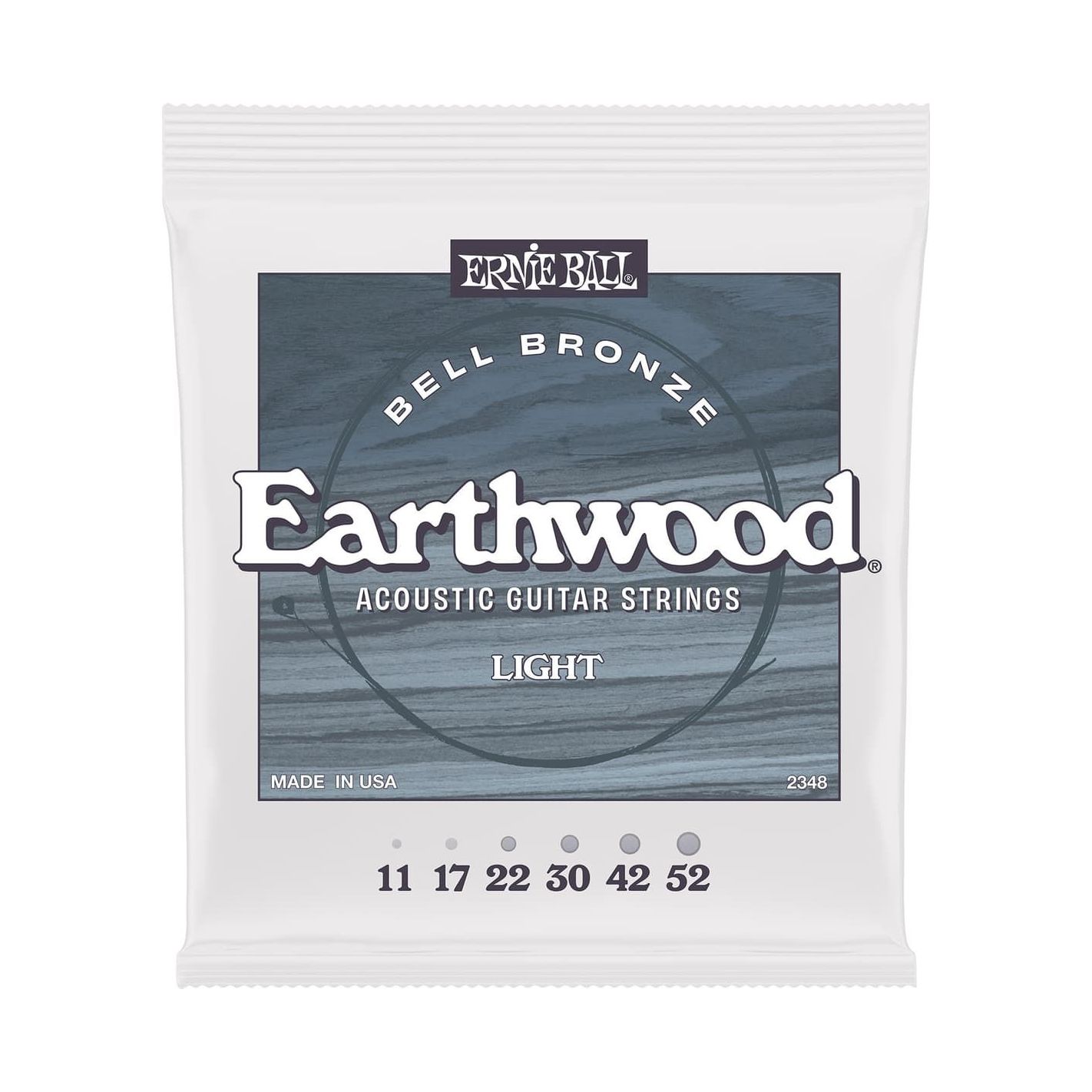 Juego de cuerdas para guitarra acústica, Ernie Ball CEB2348 Earthwood Bell Bronze Light 11-52 - Desarrolladas en colaboración con John Mayer. Aleación exclusiva inspirada en campanas y platos para mayor resonancia, proyección y sustain. Ofrecen un sonido potente, rico y completo.