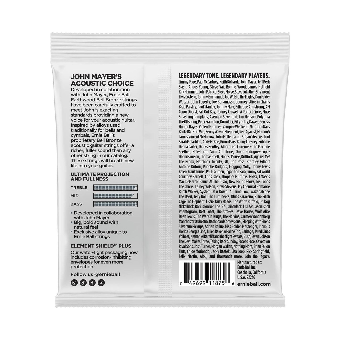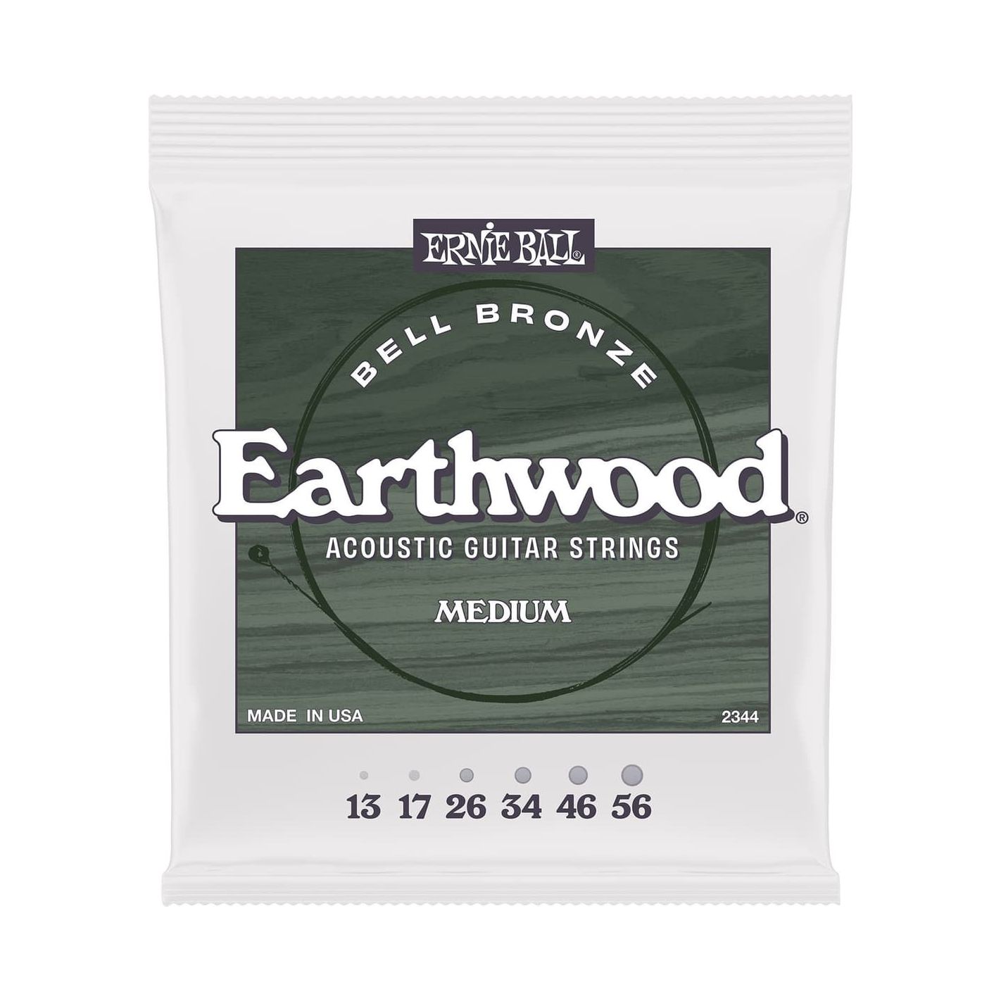 Juego de cuerdas para guitarra acústica, Ernie Ball CEB2344 Earthwood Bell Bronze Medium 13-56 - Desarrolladas en colaboración con John Mayer. Aleación exclusiva inspirada en campanas y platos para mayor resonancia, proyección y sustain. Ofrecen un sonido potente, rico y completo.