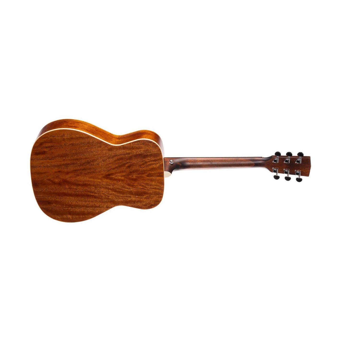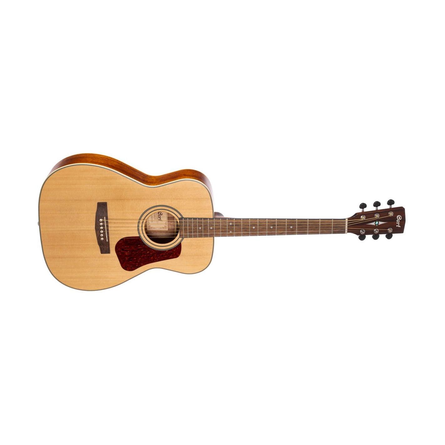Guitarra acústica Cort L100C, Natural Satin (NS) W-Bag - Cuerpo tipo concert con tapa sólida de abeto y aros y fondo de caoba, ensamblado con unión tipo dovetail y varetaje Advanced X-Bracing. Ribetes en blanco envejecido y boca de 95 mm con roseta múltiple de ABS. Golpeador tipo tortoise. Mástil de caoba en forma C con tacón triangular y alma de doble acción. Diapasón de merbau con radio de 15.75" (400 mm), 20 trastes e incrustaciones de puntos blancos. Escala de 25.5" (648 mm), cejuela PPS de 43 mm. Puente de merbau con pins envejecidos en blanco con punto negro. Clavijeros die-cast. Acabado