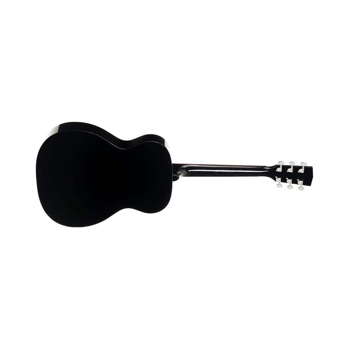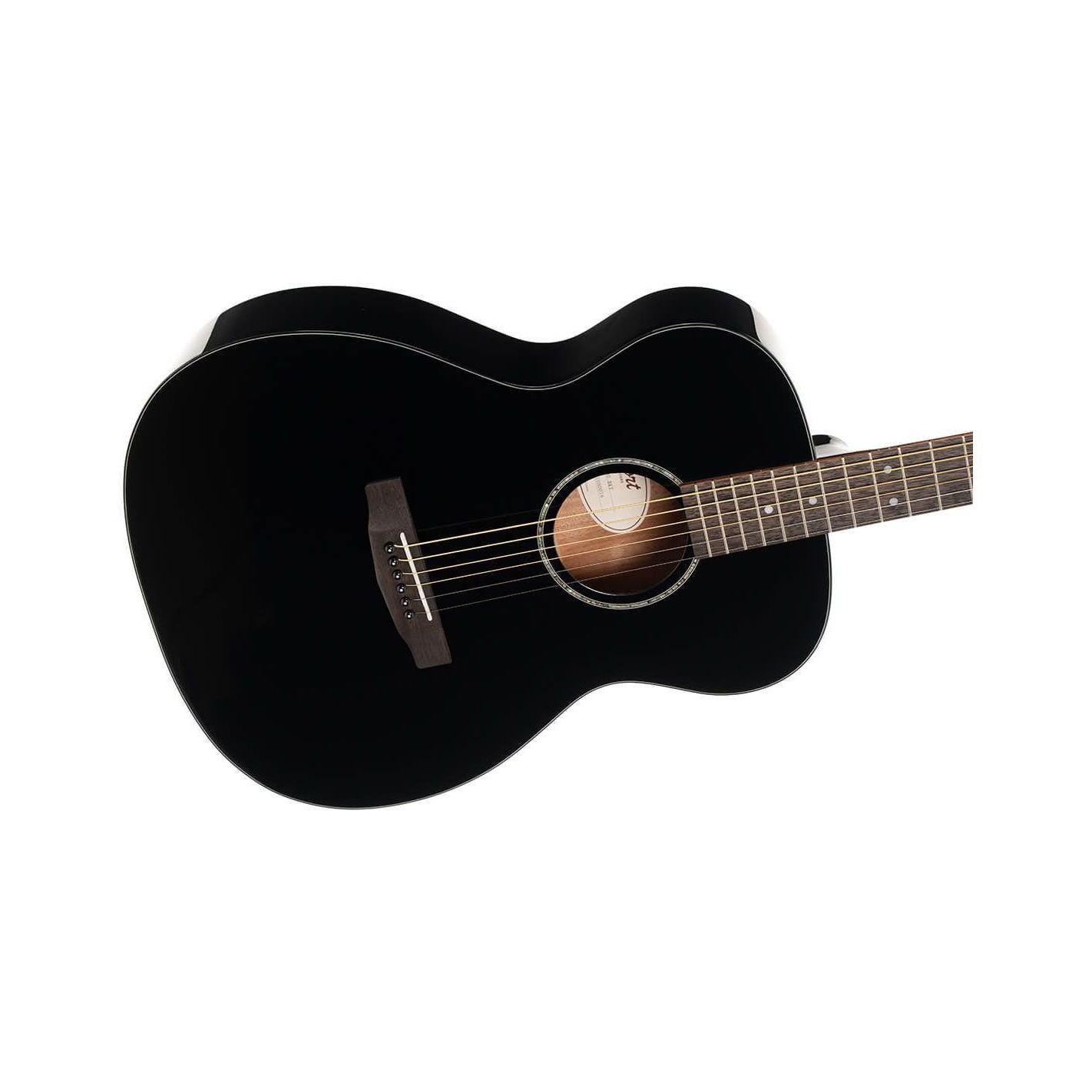 Guitarra acústica Cort L60 BK - Cuerpo tipo OM con tapa maciza de abeto y fondo y aros de caoba. Construcción con unión del mástil en cola de milano y varetaje avanzado en X. Mástil de caoba en forma C con grosor de 21 mm (1er traste) y 22,5 mm (7º traste). Diapasón de laurel con radio de 15,75" (R400), 20 trastes e incrustaciones de puntos blancos de 6 mm. Escala de 25,5" (648 mm), cejuela PPS de 43 mm. Puente de laurel con pins negros y punto blanco. Clavijeros de fundición. Roseta ABS, ribetes negros y orificio de sonido de 82 mm. Acabado Black Gloss.