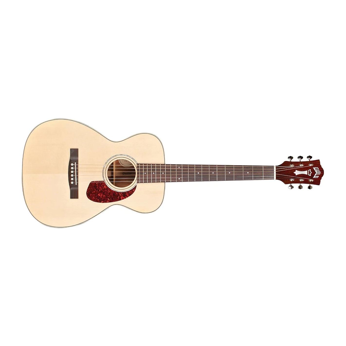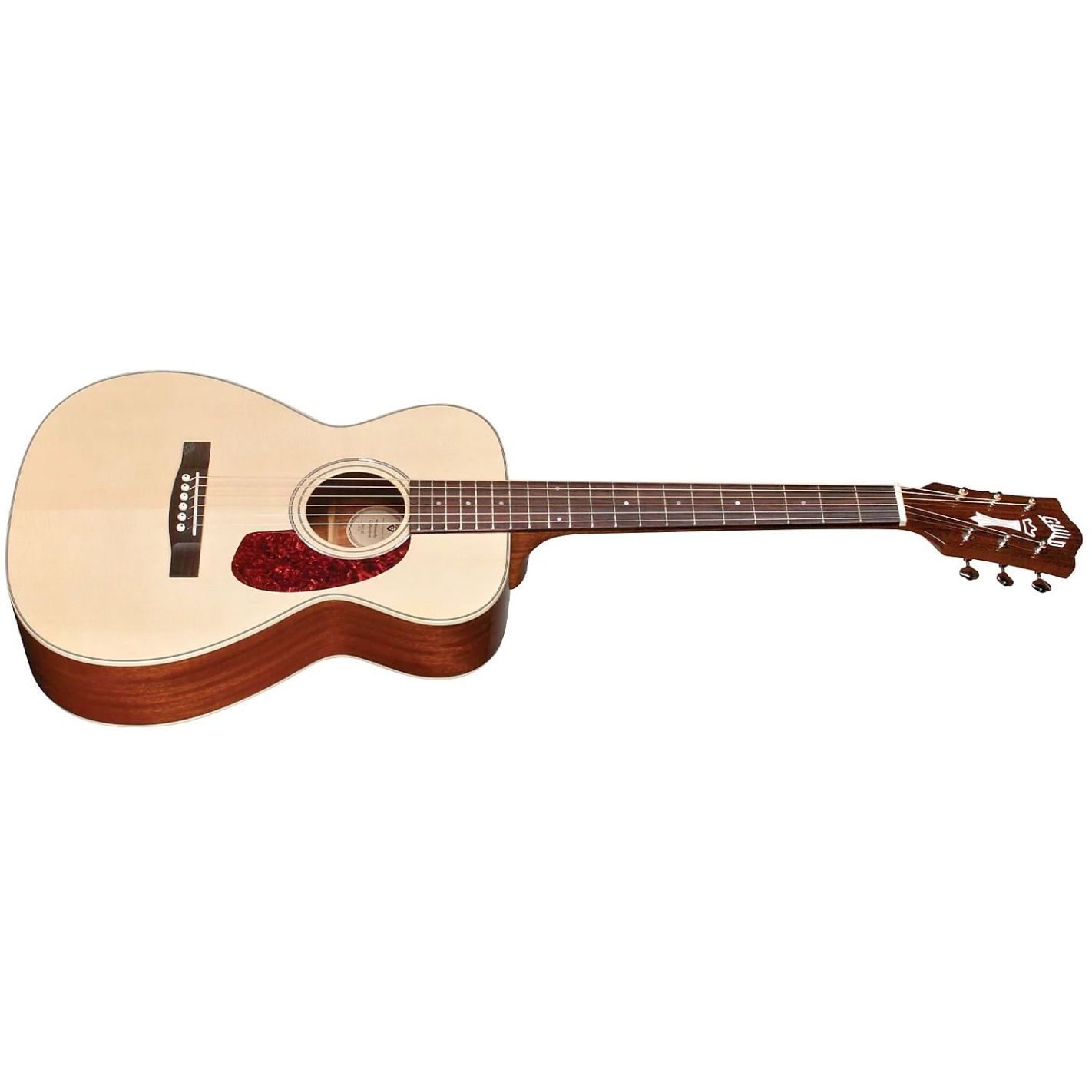 Guitarra acústica Guild M-140 W/B, Natural - Cuerpo tipo concert sin cutaway con tapa maciza de pícea de Sitka y aros y fondo de caoba africana. Varetaje tipo ladder y acabado brillante. Mástil de caoba con perfil en “C”, escala de 24.75" (629 mm) y cejuela de hueso de 44,5 mm (1.75"). Diapasón y puente de palisandro. 20 trastes. Cejuela y selleta de hueso. Roseta de nácar y golpeador carey. Emblema Chesterfield en la pala, inspirado en los modelos Guild de los años 60. Incluye funda premium Guild.