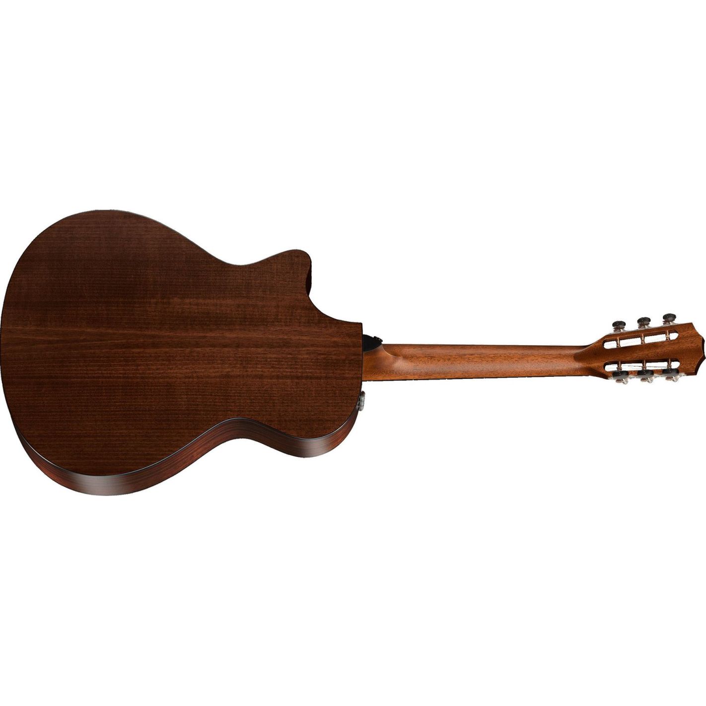 Guitarra acústica electrificada tipo concierto Taylor 322ce 12-Fret en acabado Dark Edgeburst. Escala ligeramente más corta 24 7/8". Tapa maciza de caoba, aros y fondo macizos de acacia. Mástil de caoba unido al cuerpo en el traste 12, diapasón de ébano y pala abierta. Venetian cutaway. Cejilla Tusq. Sistema de amplificación Expression System 2. Incluye estuche deluxe.