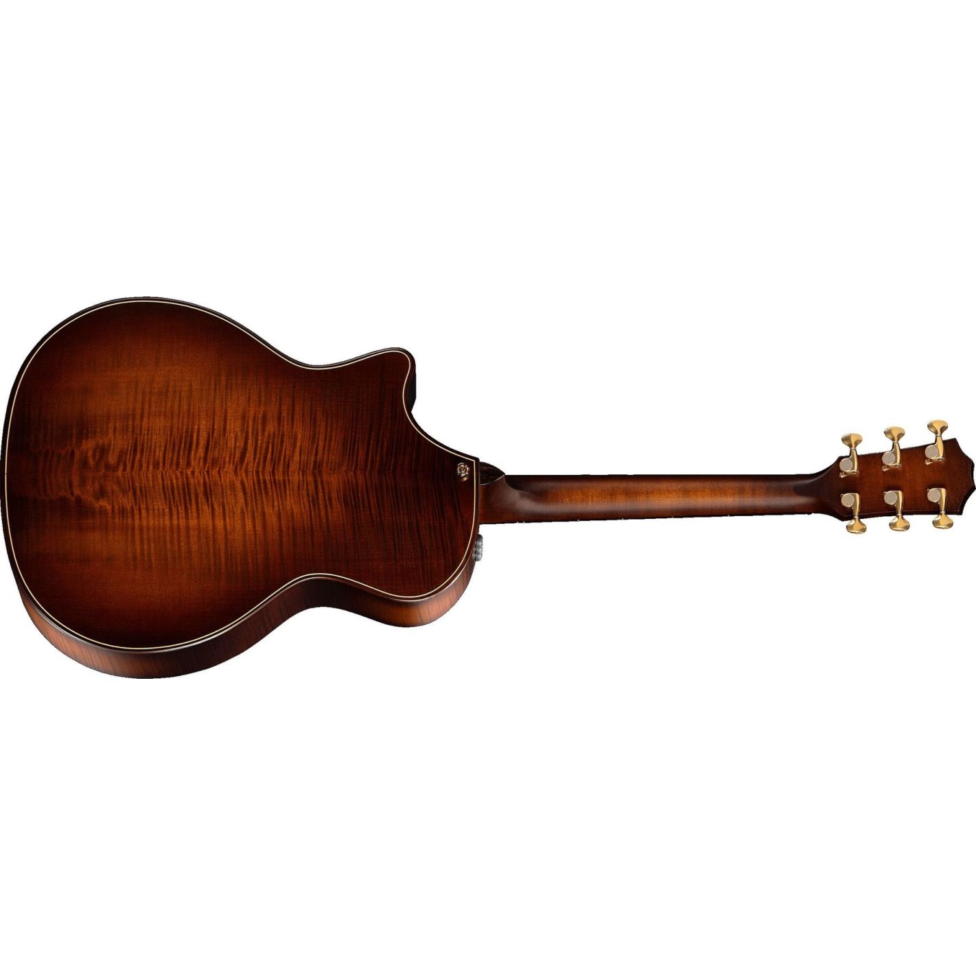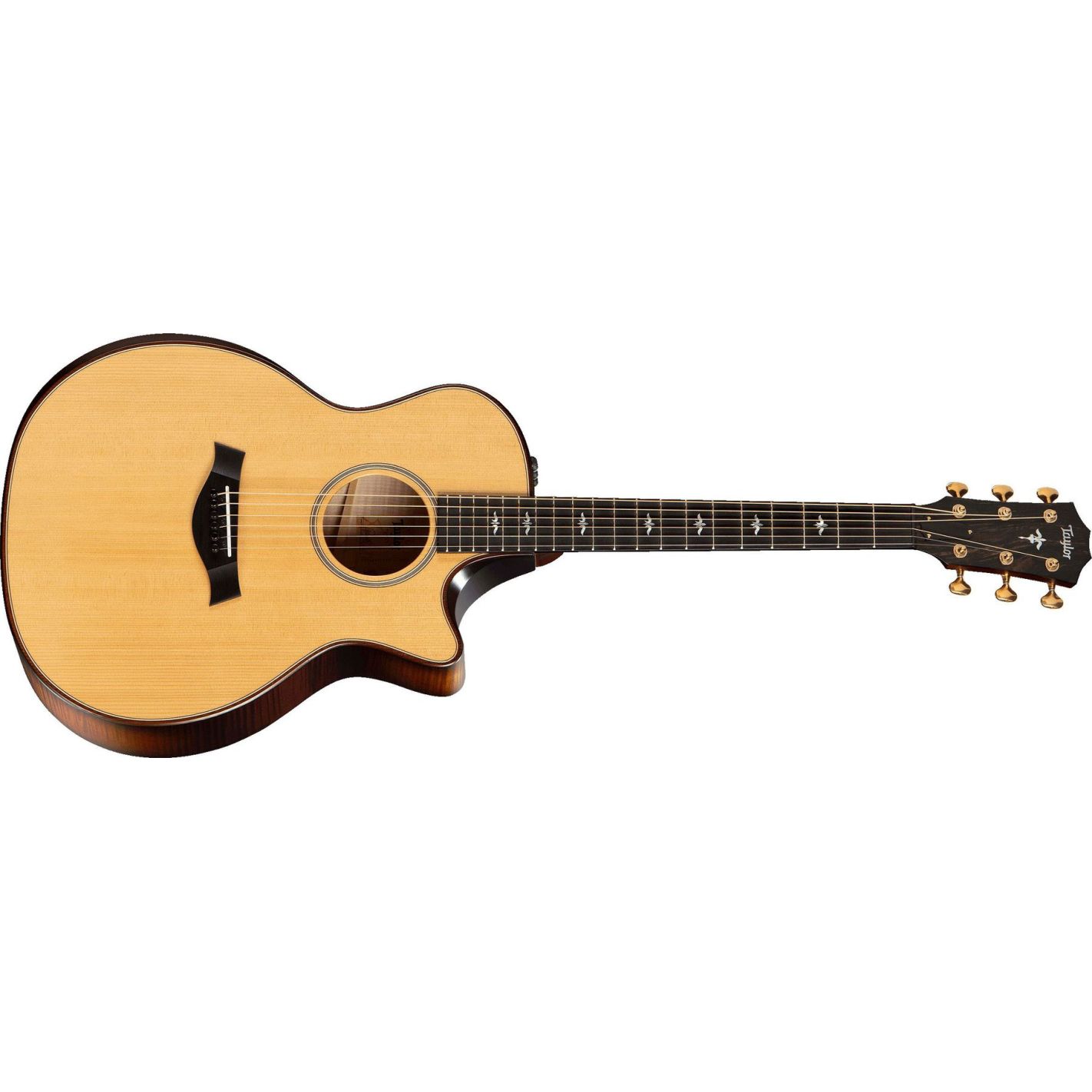 Guitarra acústica electrificada Taylor 614ce Builder's Edition. Cuerpo Grand Auditorium. Tapa maciza de abeto sitka, aros y fondo macizos de arce. Mástil de arce y diapasón de ébano. Tapa trasera en acabado Honey Burst. Cejilla de grafito. Afinadores Gotoh. Cutaway y contorno biselado. Sistema de amplificación Expression System 2. Incluye estuche deluxe.