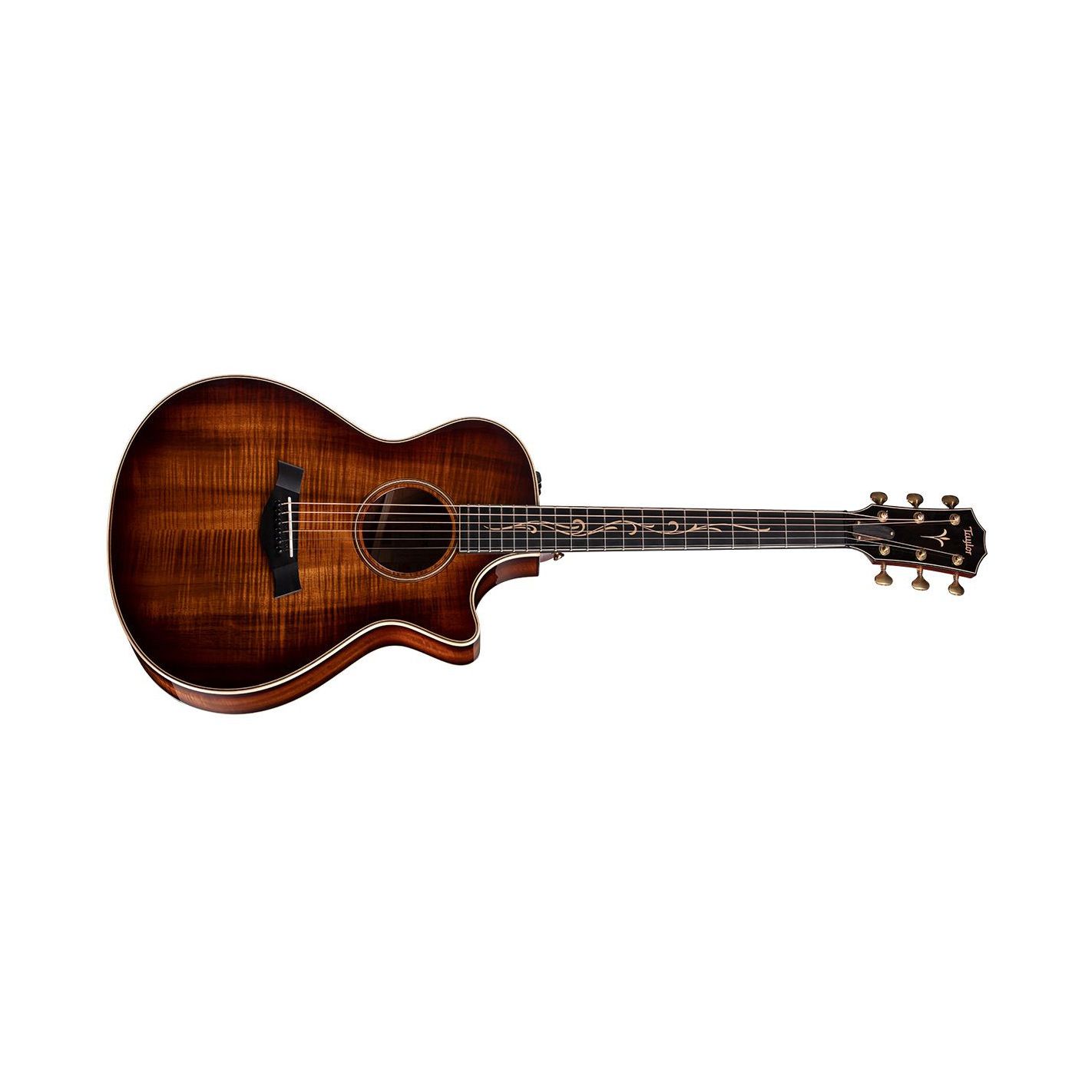 Guitarra acústica electrificada Taylor K22ce en acabado Shaded Edgeburst. Cuerpo Grand Concert. Tapa, aros y fondo macizos de Koa. Mástil de caoba y diapasón de ébano. Venetian cutaway. Afinadores Gotoh. Cejilla de grafito. Incluye estuche deluxe.
