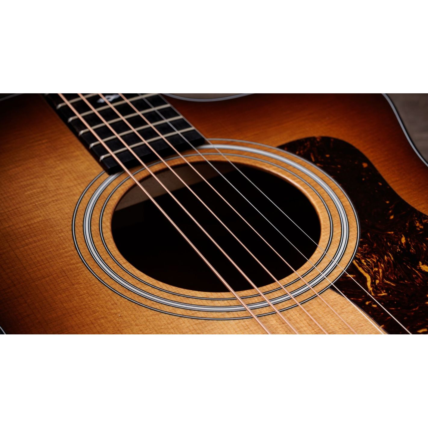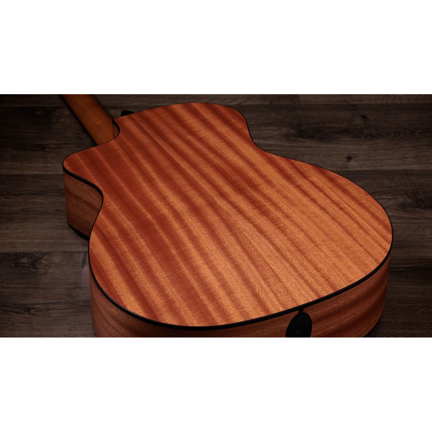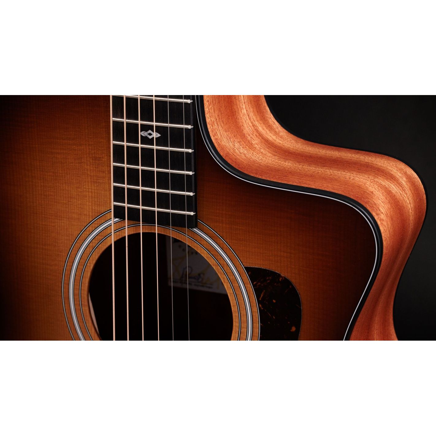 Guitarra acústica Taylor Sunset Blvd 114ce SEB - Cuerpo Grand Auditorium con cutaway veneciano, tapa maciza de pícea de Sitka torrefactada, aros y fondo de sapeli laminado, acabado Sunset Edgeburst satinado. Varetaje V-Class cantilevered para mayor volumen, sustain y entonación. Mástil de caoba o arce con perfil delgado y acabado mate. Diapasón de ébano o eucalipto con incrustaciones de diamante en acrílico italiano, 20 trastes. Escala de 25.5" (648 mm). Puente de ébano con selleta compensada. Electrónica Expression System 2. Clavijeros dorados. Incluye funda blanda tipo gig bag.