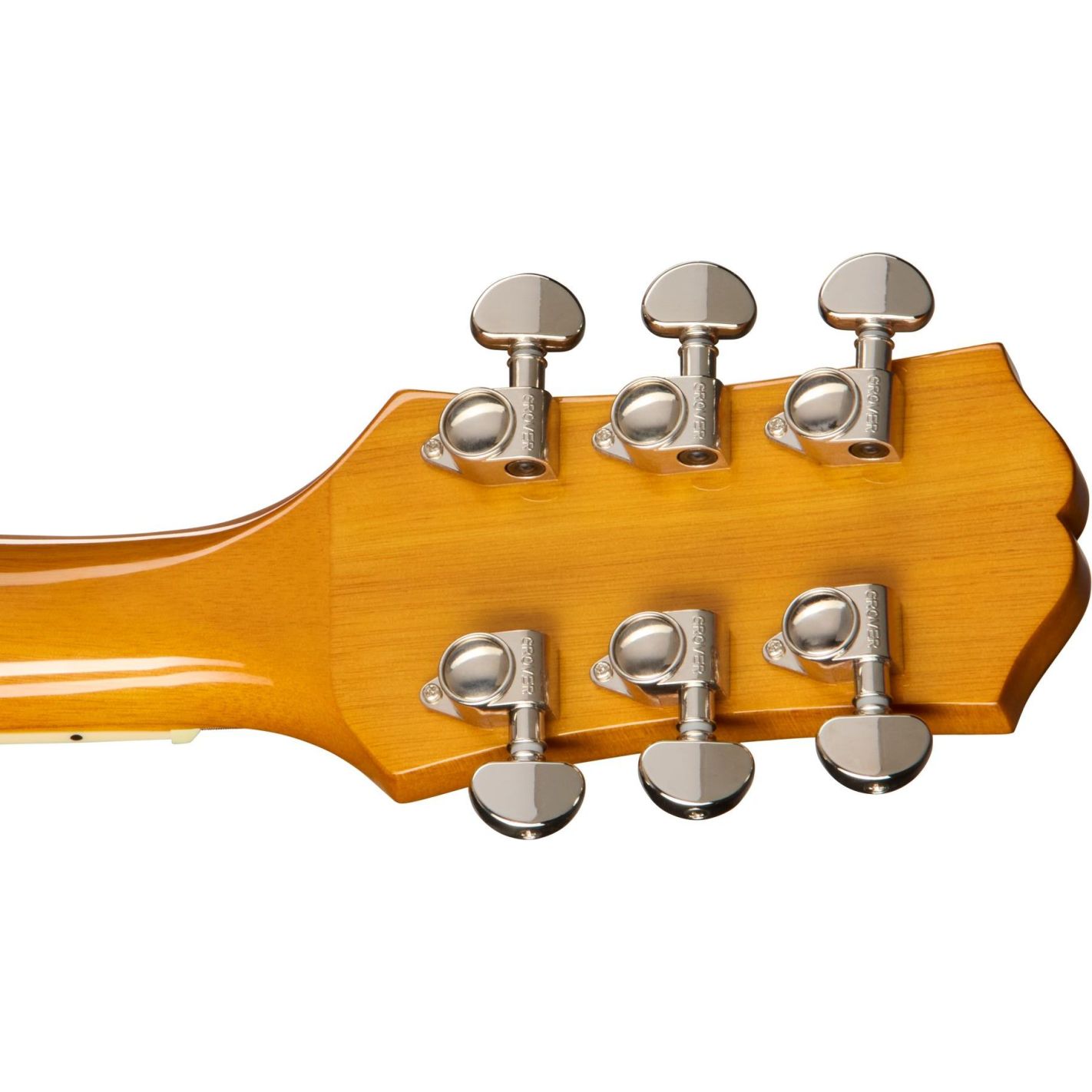 Su acabado Natural Gloss resalta la veta de la madera y refuerza la estética vintage de este modelo. Se entrega con funda blanda Epiphone para transporte y protección segura.