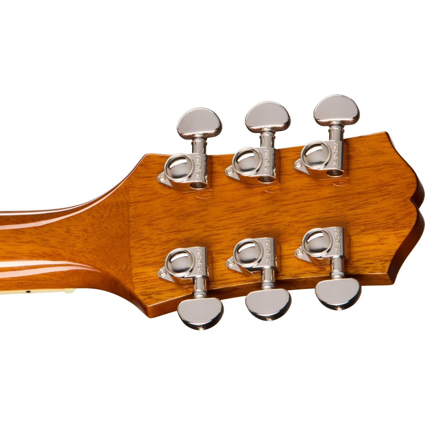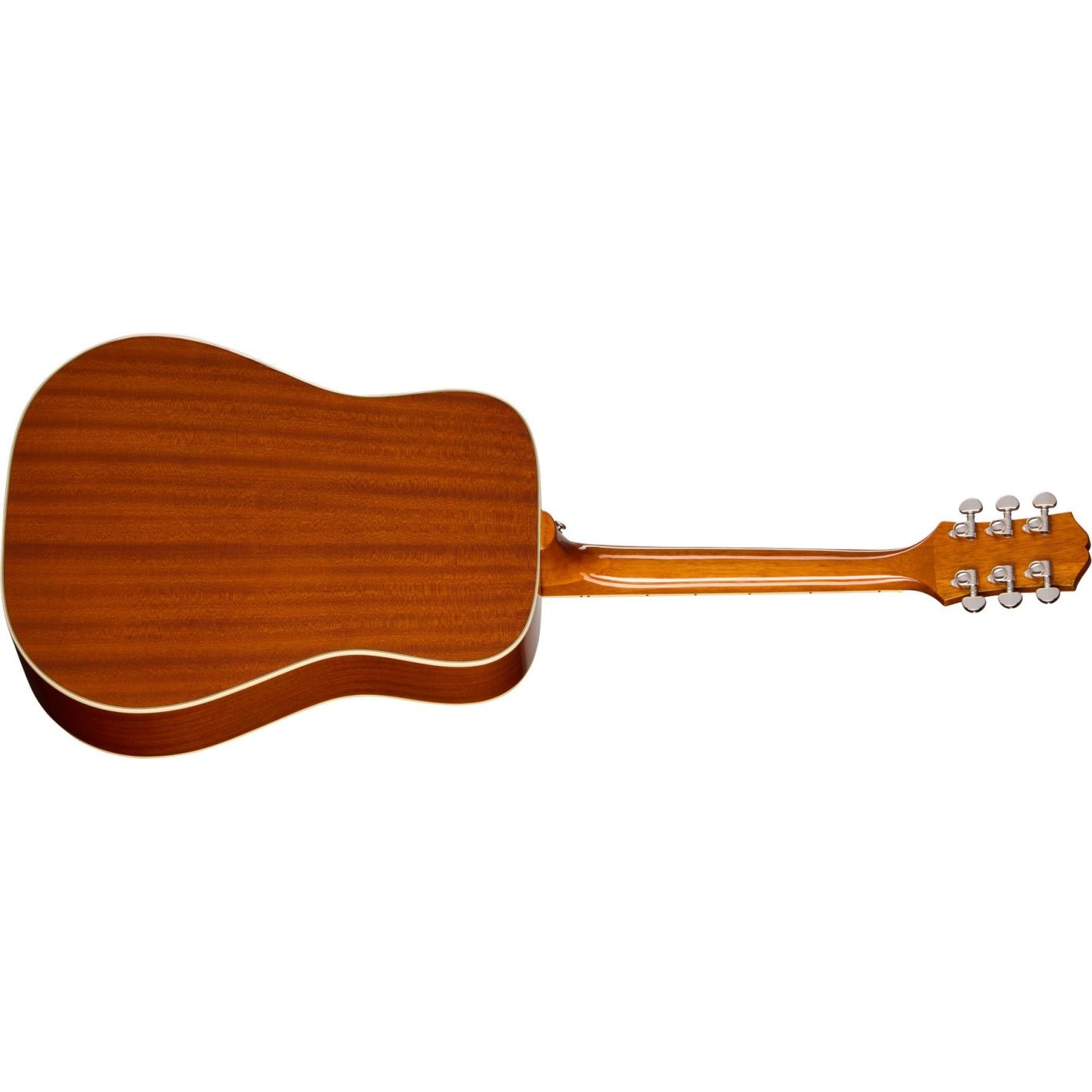Su acabado Antique Natural Gloss resalta la veta de la madera y se complementa con el golpeador Hummingbird con gráficos icónicos, que refuerzan su carácter clásico. Cada guitarra incluye funda blanda Epiphone, ofreciendo protección y practicidad para el transporte.