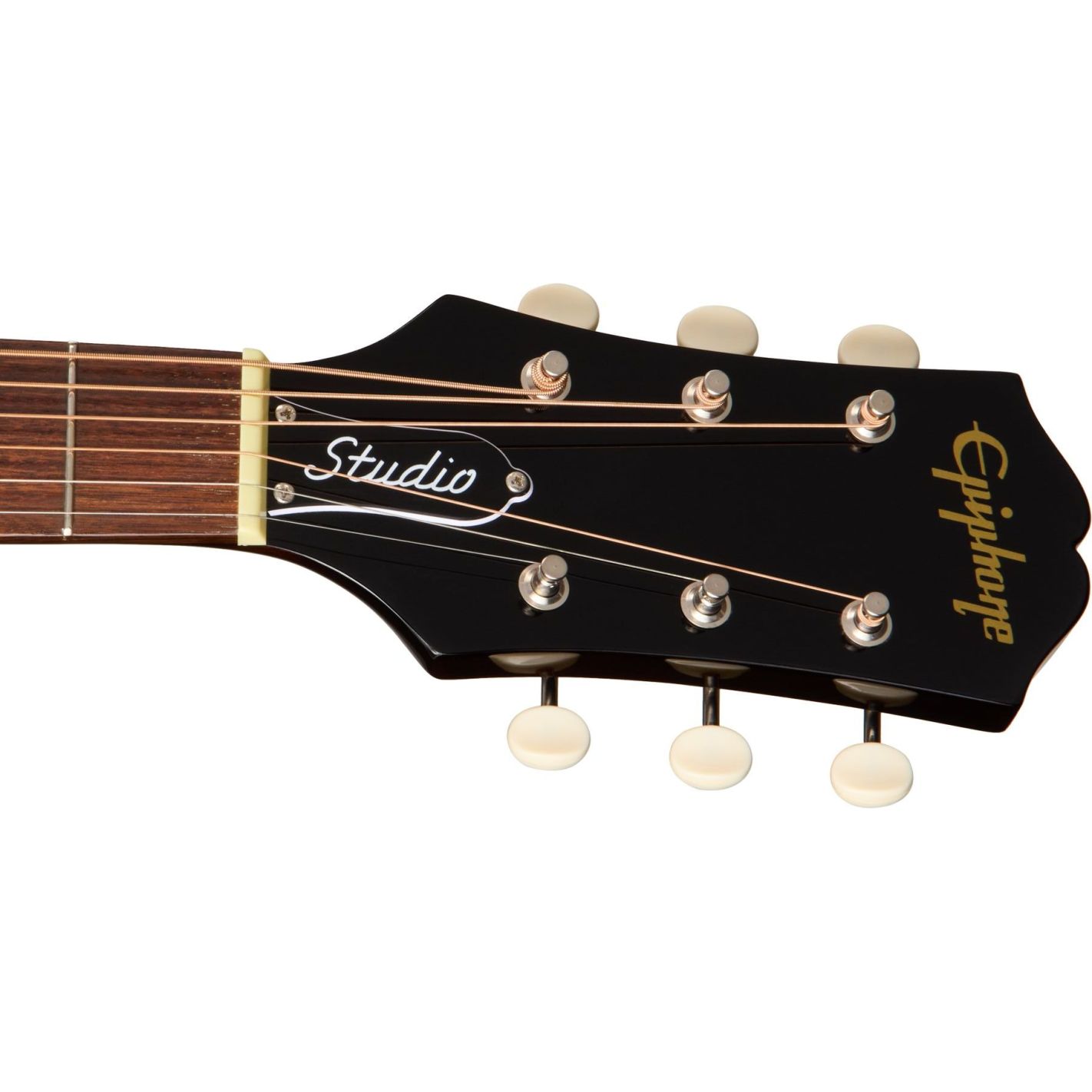 Guitarra acústica Epiphone J-45 Studio, Natural - Cuerpo estilo J-45 con fondo y aros de caoba laminada, tapa de abeto macizo, binding marfil de 4 capas en tapa y negro en trasera, y una capa en diapasón. Mástil de caoba perfil Rounded C con diapasón de palisandro, 20 trastes, escala de 24.75" (628.65 mm), cejuela plástica de 43 mm, incrustaciones pearloid dot. Puente belly-up de palisandro con pins plásticos color marfil. Golpeador en forma de lágrima tortoise shell epóxico. Clavijeros three-on-a-plate con botones plásticos color marfil. Electrónica Fishman S-Core con pastilla bajo selleta y controles de volumen y tono montados en boca. Acabado brillante. Hardware niquelado.
