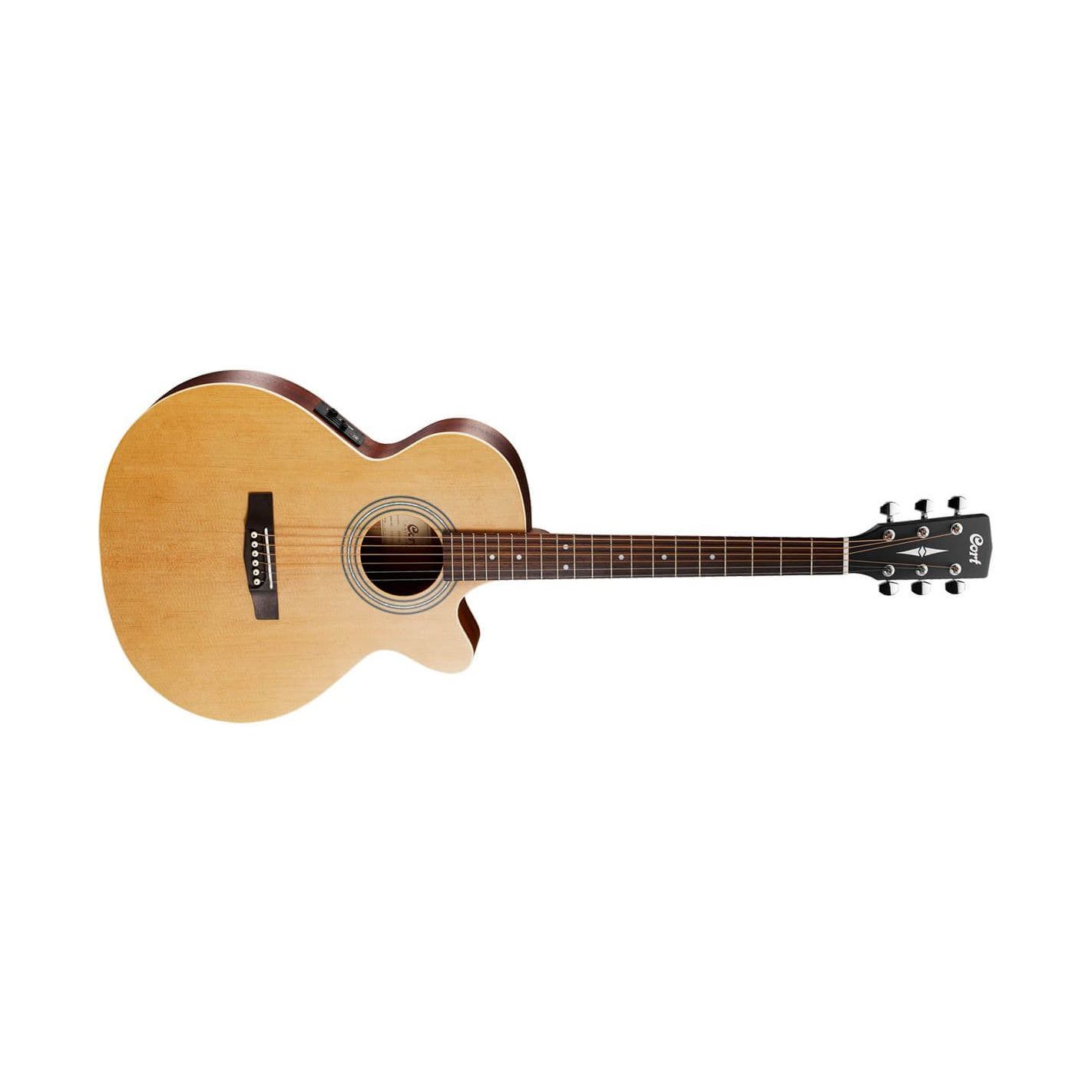 Guitarra acústico-eléctrica zurda Cort SFX-ME LH OP - Cuerpo de abeto con aros y fondo de caoba, forma SFX con corte veneciano, unión mástil-cuerpo tipo dovetail y varetaje Advanced X-Bracing. Mástil de caoba con perfil en C y alma de doble acción. Diapasón de laurel con radio de 15.75" (R400), incrustaciones tipo punto y 20 trastes. Escala de 25.5" (648 mm), cejuela PPS de 43 mm. Puente de laurel con pins envejecidos en blanco con punto negro y selleta PPS. Electrónica Cort CE304T. Roseta de acrílico perlado blanco, ribetes envejecidos y clavijeros die-cast. Acabado Open Pore (OP)