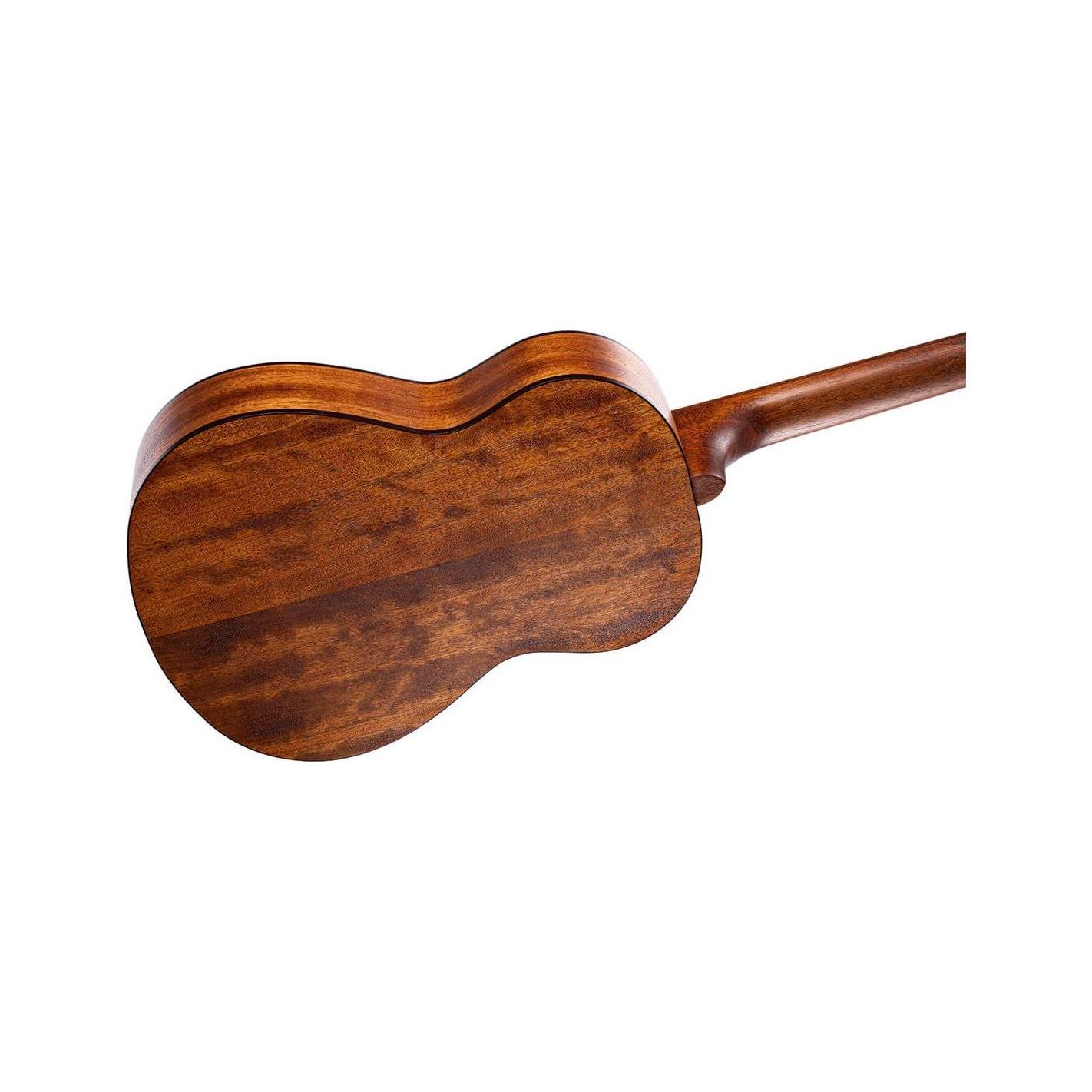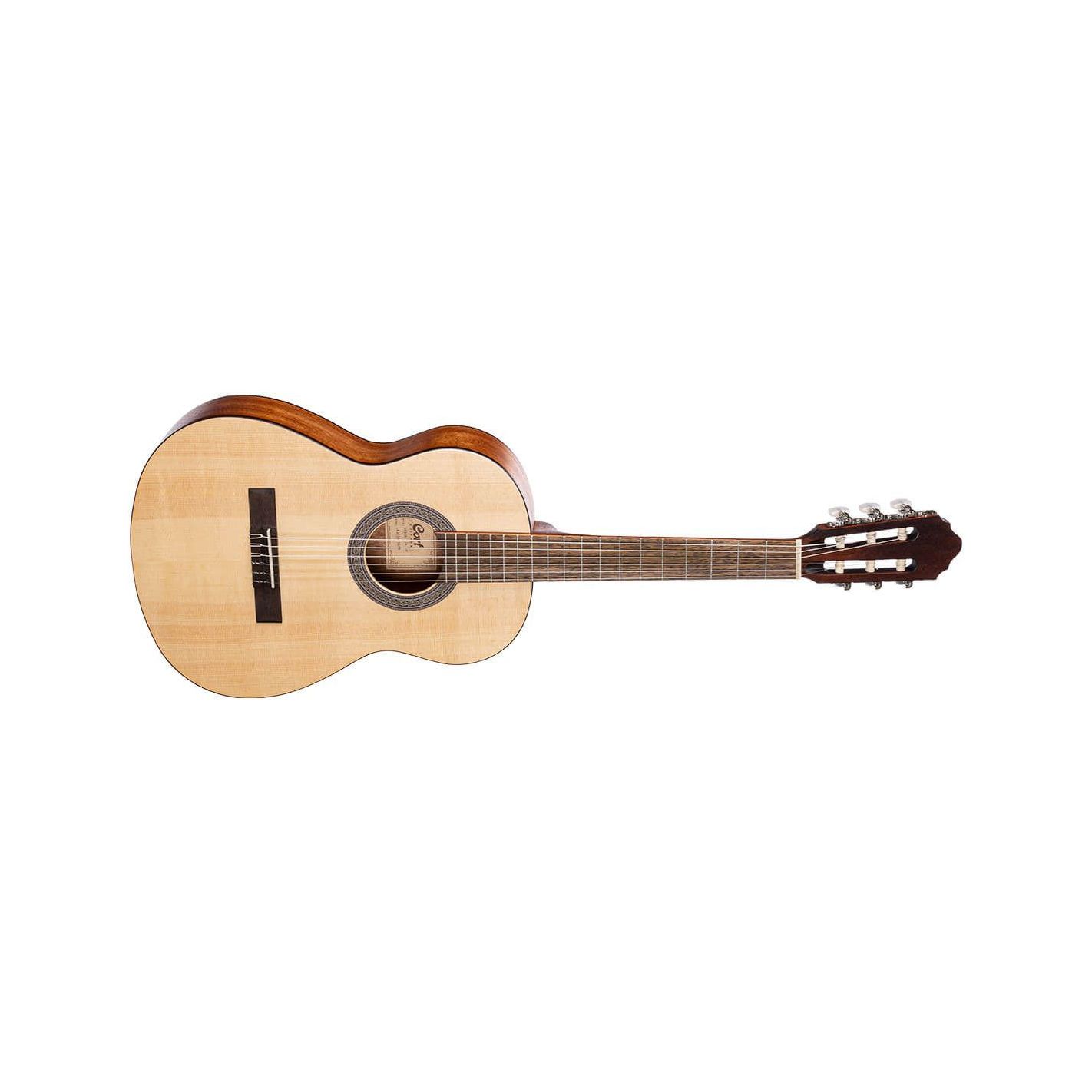 Guitarra clásica Cort Classic AC200 3/4 OP W-Bag - Cuerpo de forma clásica 3/4 con tapa sólida de abeto y aros y fondo de caoba, unión mástil-cuerpo tipo dovetail y varetaje tradicional en abanico. Mástil de caoba con perfil en U. Diapasón de merbau con 19 trastes. Escala de 22.8" (578 mm), cejuela PPS de 45 mm. Puente de merbau con selleta PPS. Roseta de diseño personalizado, clavijeros estilo clásico. Acabado Open Pore (OP).