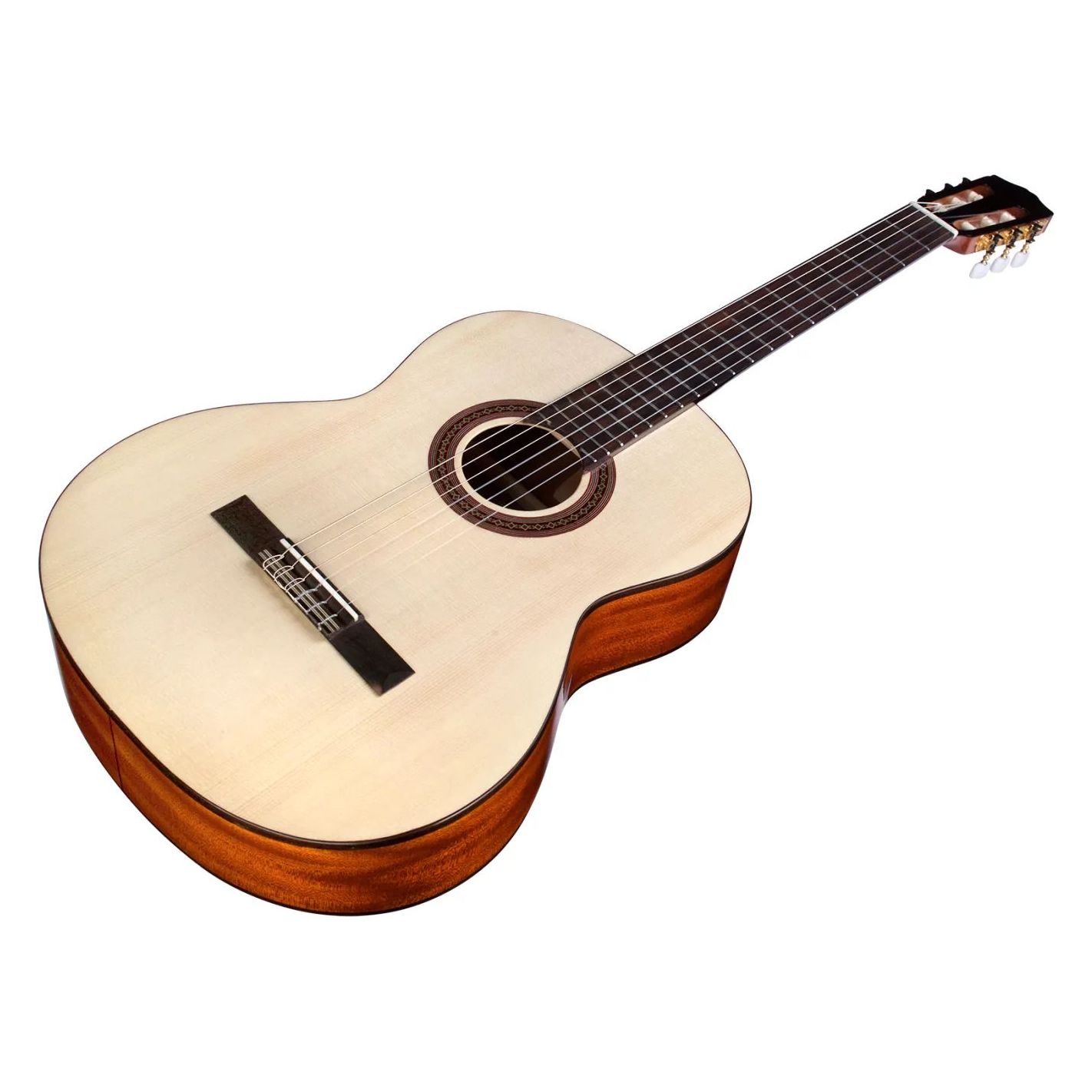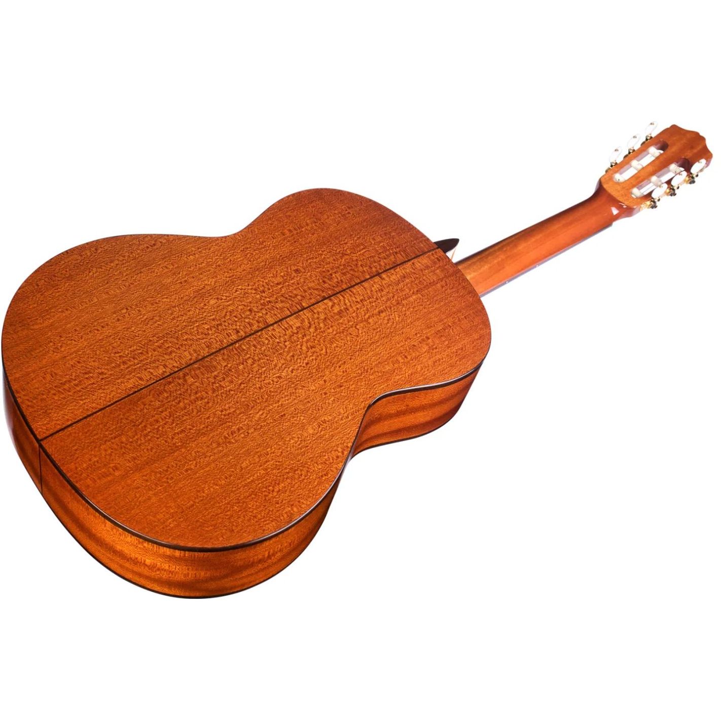 Guitarra clásica Cordoba C5 SP, Natural - Cuerpo con tapa maciza de pícea Engelmann y aros y fondo de caoba. Construcción tradicional española con unión tipo dovetail y varetaje abanico. Mástil de caoba con perfil en “C”, 12 trastes al cuerpo. Diapasón y puente de pau ferro con cejuela y selleta de hueso. Fileteado y ribetes en pau ferro y composite, centro trasero de pau ferro. Roseta de madera incrustada a mano y clavijero tallado. Acabado brillante de poliuretano.