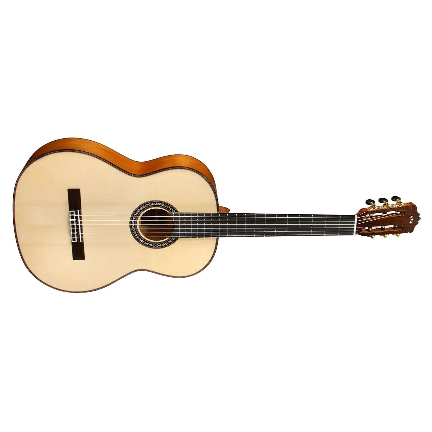 Guitarra flamenca Cordoba F10 Flamenco W/C, Natural - Cuerpo totalmente macizo con tapa de abeto europeo y aros y fondo de ciprés macizo, con filetes y centro trasero de palosanto e incrustaciones de arce y negro. Construcción tradicional española con unión tipo talón y cuerpo más delgado que una guitarra clásica. Varetaje tipo abanico para máxima proyección y respuesta rápida. Mástil de caoba en perfil C, diapasón de ébano y puente de palosanto. Cejuela y selleta de hueso. 12 trastes al cuerpo. Acabado brillante en poliuretano. Clavijeros con botones negros y relación 14:1.