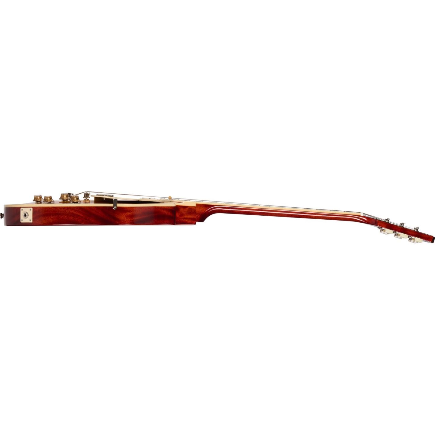 Su cuerpo de caoba con tapa de arce flameado AAA proporciona una resonancia excepcional y un sustain prolongado. El binding en crema en el cuerpo y el diapasón resalta su estética clásica. Su mástil de caoba con perfil 1959 Rounded C Medium y una escala de 24.75" (628.65mm) ofrece una sensación cómoda y auténtica. El diapasón de palisandro con 22 trastes, cejuela Graph Tech de 43mm e incrustaciones trapezoidales de madreperla completa su construcción premium.