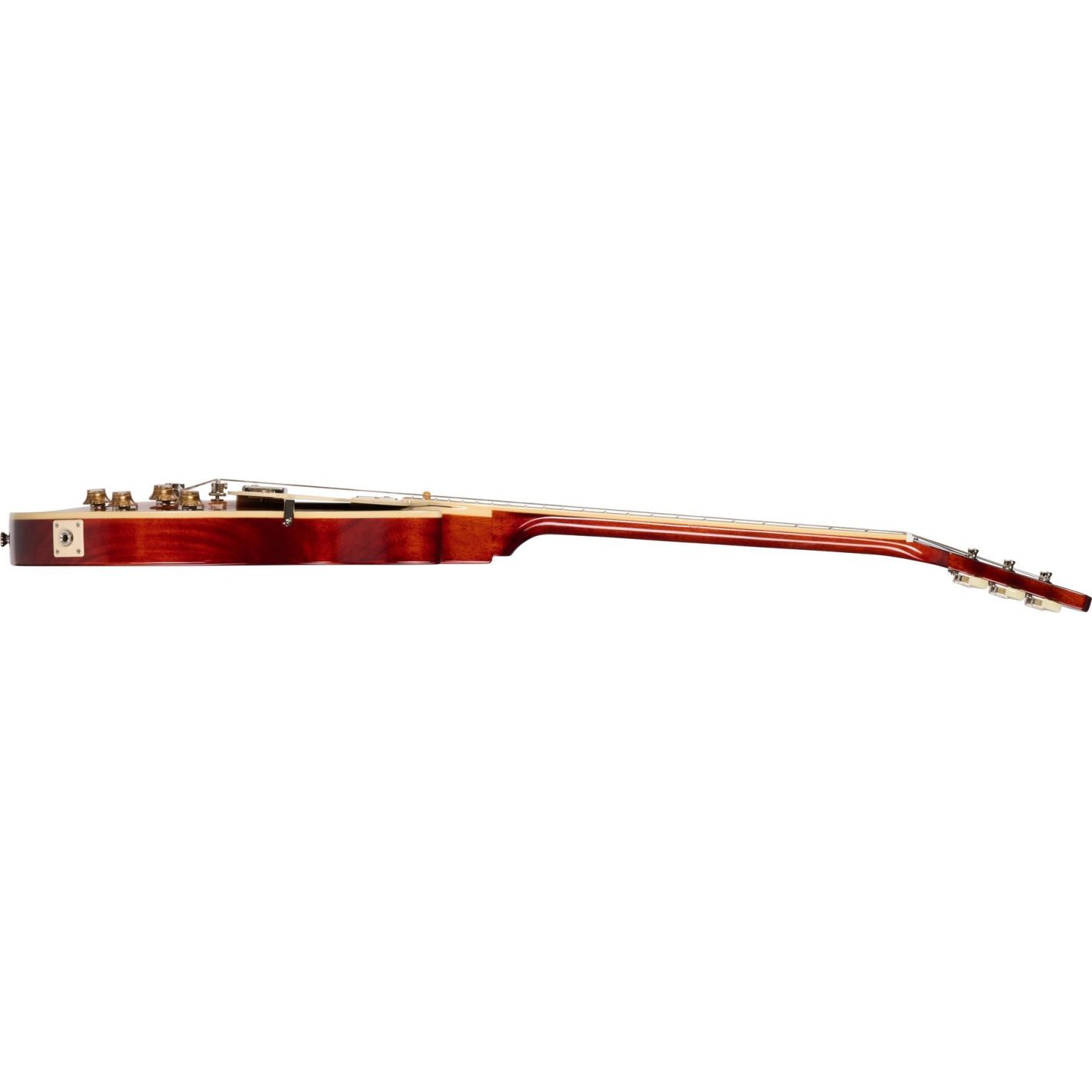 Guitarra Eléctrica Epiphone 1959 Les Paul Standard Reissue Washed Bourbon Burst - Cuerpo de caoba con tapa de arce con chapa de arce flameado AAA. Mástil de caoba de una pieza, perfil 1959 Rounded C Medium. 22 trastes, escala 24.75" (628.65 mm), diapasón de palisandro. Ancho de cejilla 43 mm. Pastillas Gibson Custombucker (puente/mástil), ajuste con CTS Potenciómetros, Bumblebee paper-in-oil capacitors. Controles 2 volumen, 2 tono. Selector de 3 posiciones. Puente ABR-1 Tune-O-Matic, hardware niquelado, clavijeros Epiphone Deluxe "Single Ring" Keystone Button. Incluye estuche rígido marrón con interior rosa de Epiphone Custom Graphics.
