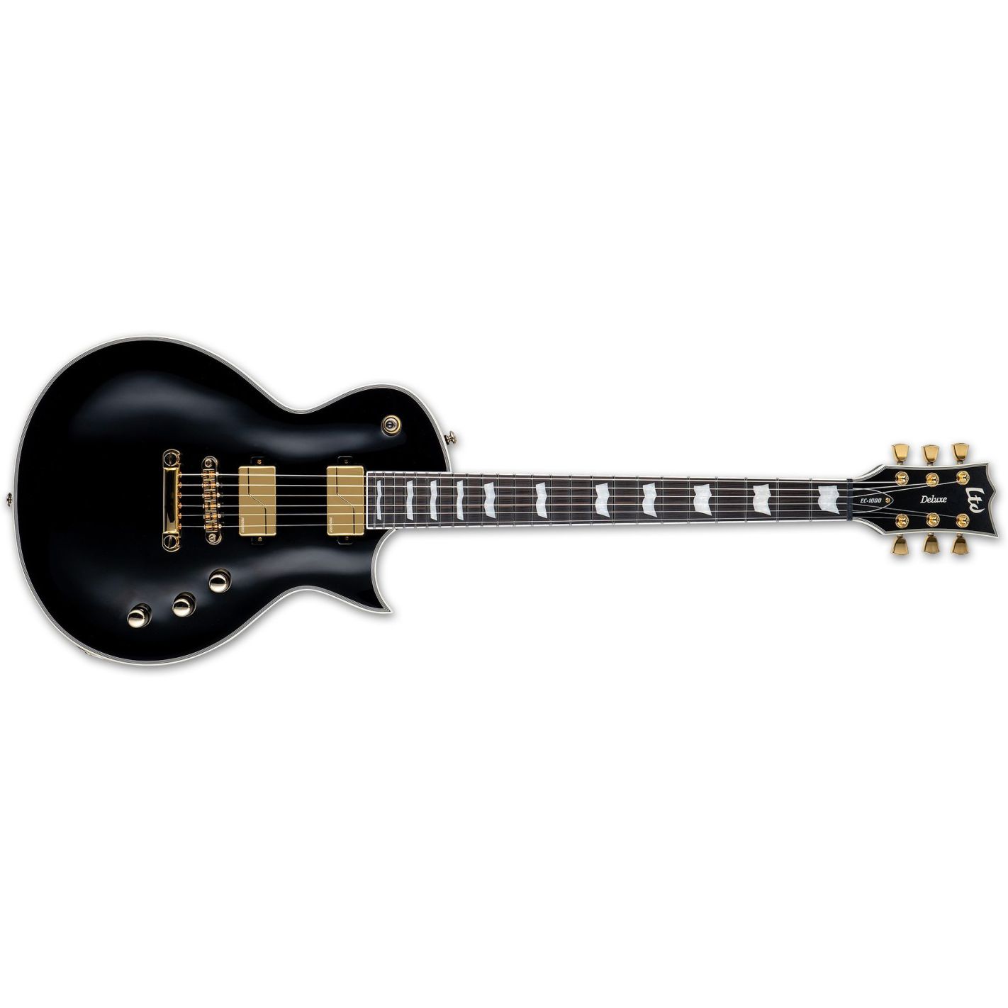 LTD EC-1000 - Black - Construcción set-thru - Escala de 24,75" - Cuerpo de caoba - Mástil de caoba de 3 piezas con perfil "Thin U" - Diapasón de ébano de Macassar con 24 trastes de acero extra jumbo - Radio de 14" - Cejilla de 42 mm - Herrajes dorados - Puente Tonepros Locking TOM & Tailpice - Clavijero LTD Locking - Pastillas Fishman Fluence Modern Humbucker Ceramic/Alnico direct mount - Cuerdas (.010/.013/.017/.026/.036/.046)