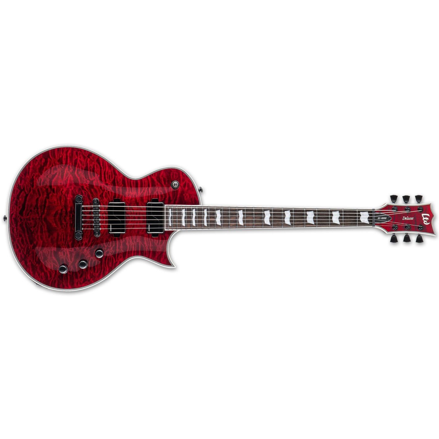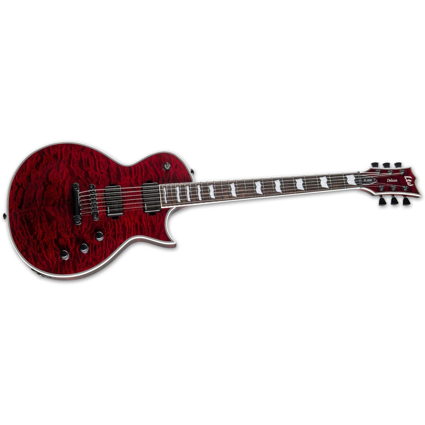 LTD EC-1000 QM - See Thru Black Cherry Fluence - Construcción set-thru - Escala de 24,75" - Cuerpo de caoba con tapa de arce quilted - Mástil de caoba de 3 piezas con perfil "Thin U" - Diapasón de ébano de Macassar con 24 trastes de acero extra jumbo - Radio de 14" - Cejilla de 42 mm - Herrajes negros - Puente Tonepros Locking TOM & Tailpice - Clavijero LTD Locking - Pastillas Fishman Fluence Modern Humbucker Ceramic/Alnico direct mount - Cuerdas (.010/.013/.017/.026/.036/.046)