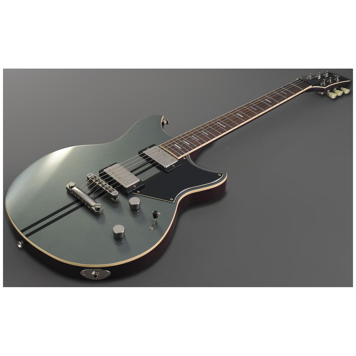 Guitarra eléctrica Yamaha Revstar RSS20 MGR en acabado Mist Green, de la serie Standard. Cuerpo aligerado de caoba con tapa de arce. Mástil de 3 piezas de caoba reforzado con carbono para mejorar la transferencia de vibraciones. Diapasón de palorosa y radio de 12". 22 trastes jumbo de acero inoxidable. Cejilla de 41.9 mm. 2 pastillas VH5 Humbucker Alnico V. Selector de 5 posiciones, con desplazamiento de fase en las posiciones intermedias. Control de volumen y tono ( push/pull booster pasivo ) Puente Tune-o-Matic. Estética de inspiración Café Racer. Incluye funda.