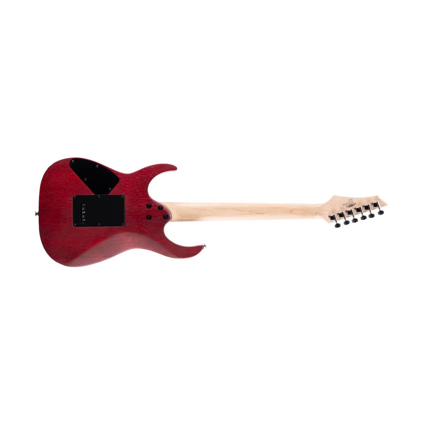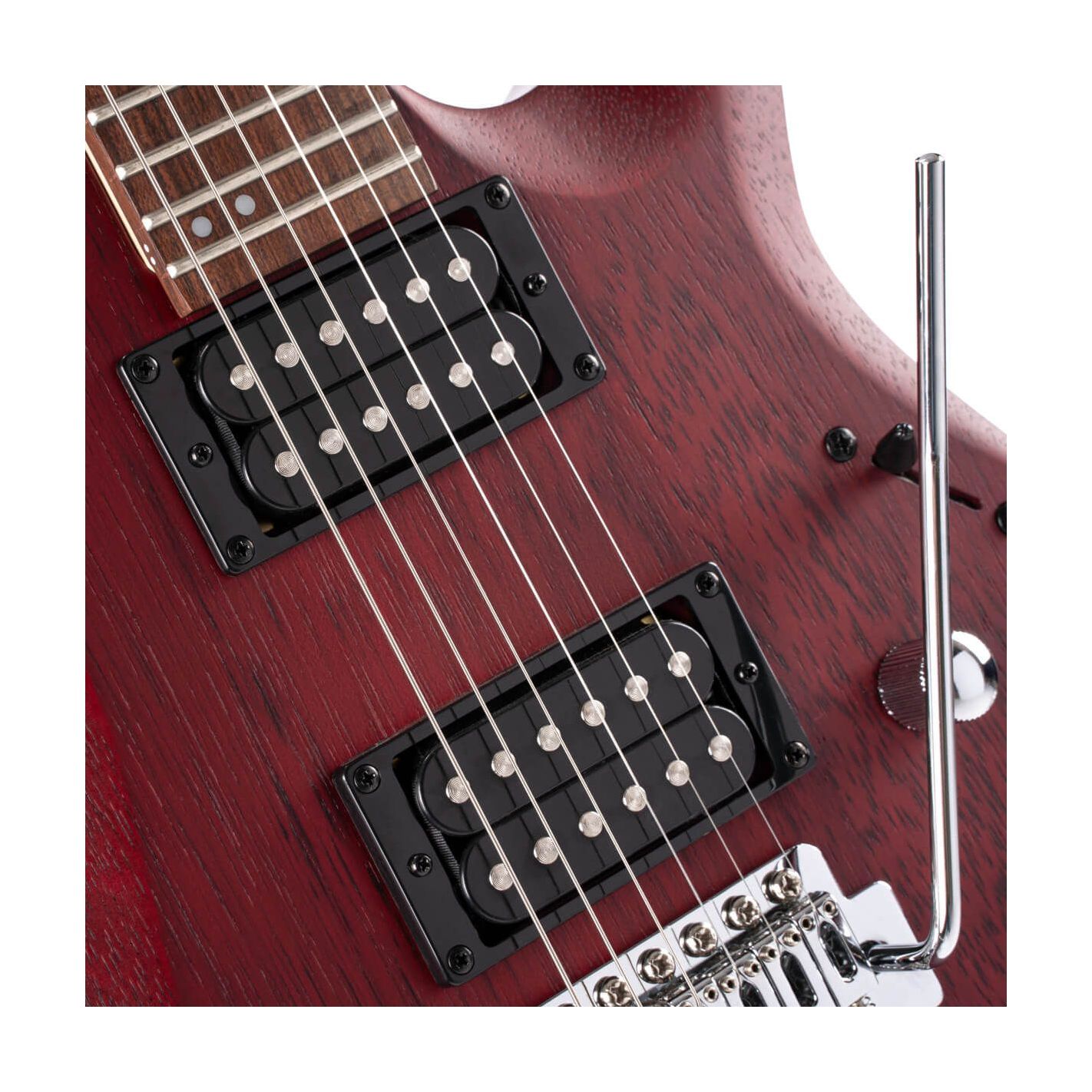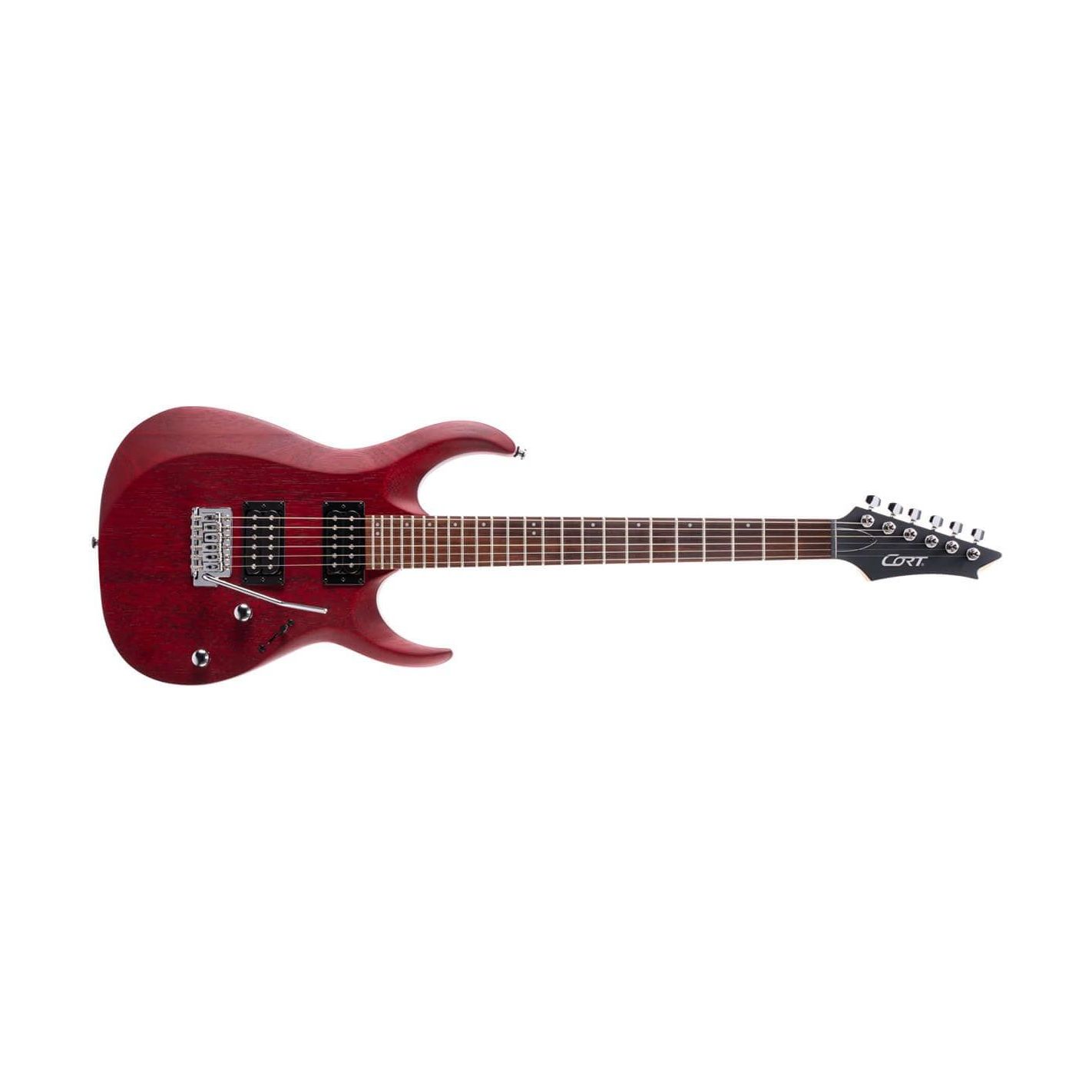 Guitarra eléctrica Cort X100 OPBC - Cuerpo de meranti con mástil atornillado de arce duro, escala de 25.5" (648 mm). Diapasón de jatoba con radio de 15.75" (R400), 24 trastes. Pastillas Cort Powersound Pickup Set, controles de 1 volumen y 1 tono, conmutador de 3 posiciones. Puente trémolo de 6 puntos. Clavijeros die-cast. Hardware en acabado cromado.