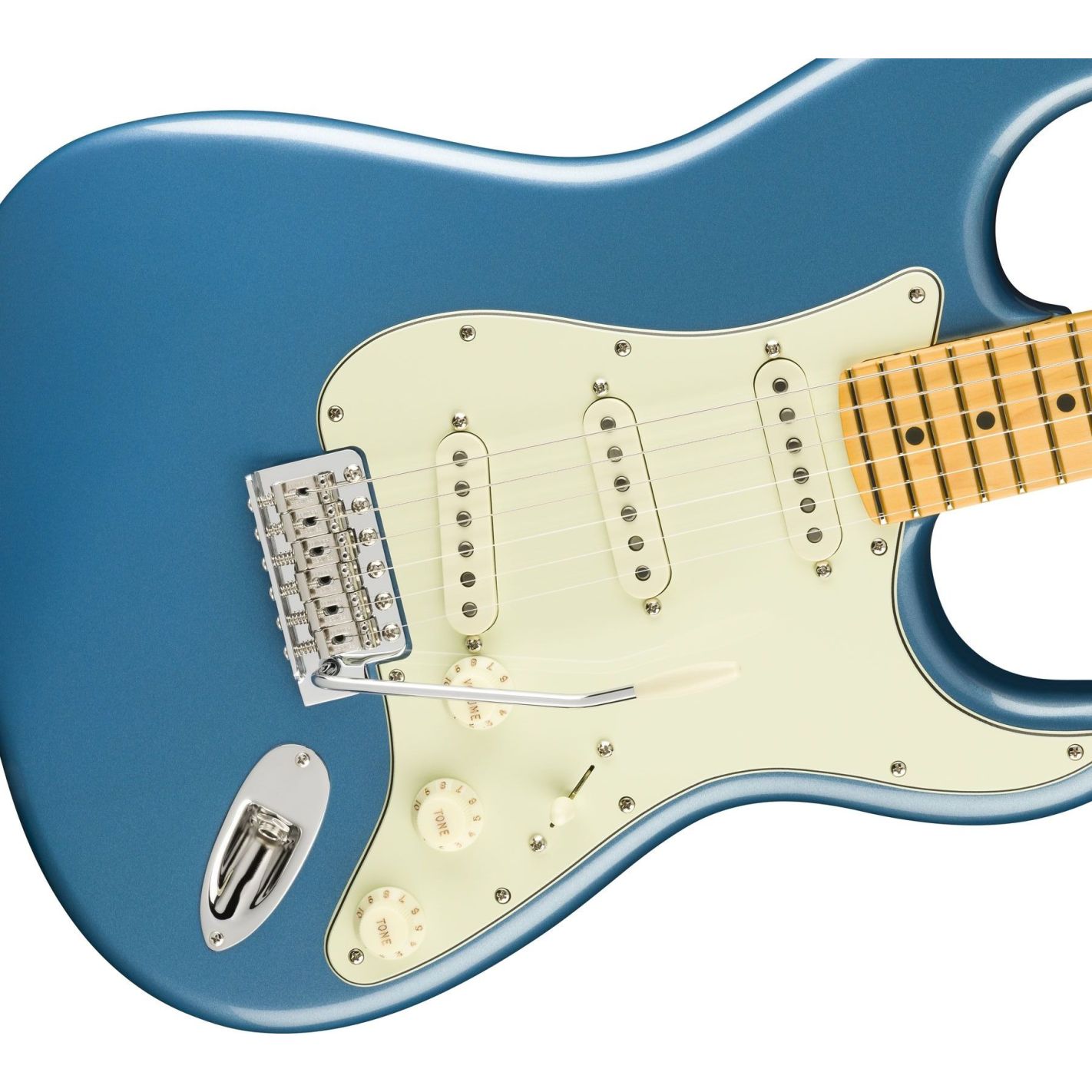 La Fender American Professional Classic Stratocaster en acabado Faded Lake Placid Blue con diapasón de arce es una guitarra eléctrica que combina la herencia clásica de Fender con especificaciones actuales, diseñada para guitarristas que buscan un sonido auténtico con fiabilidad moderna.