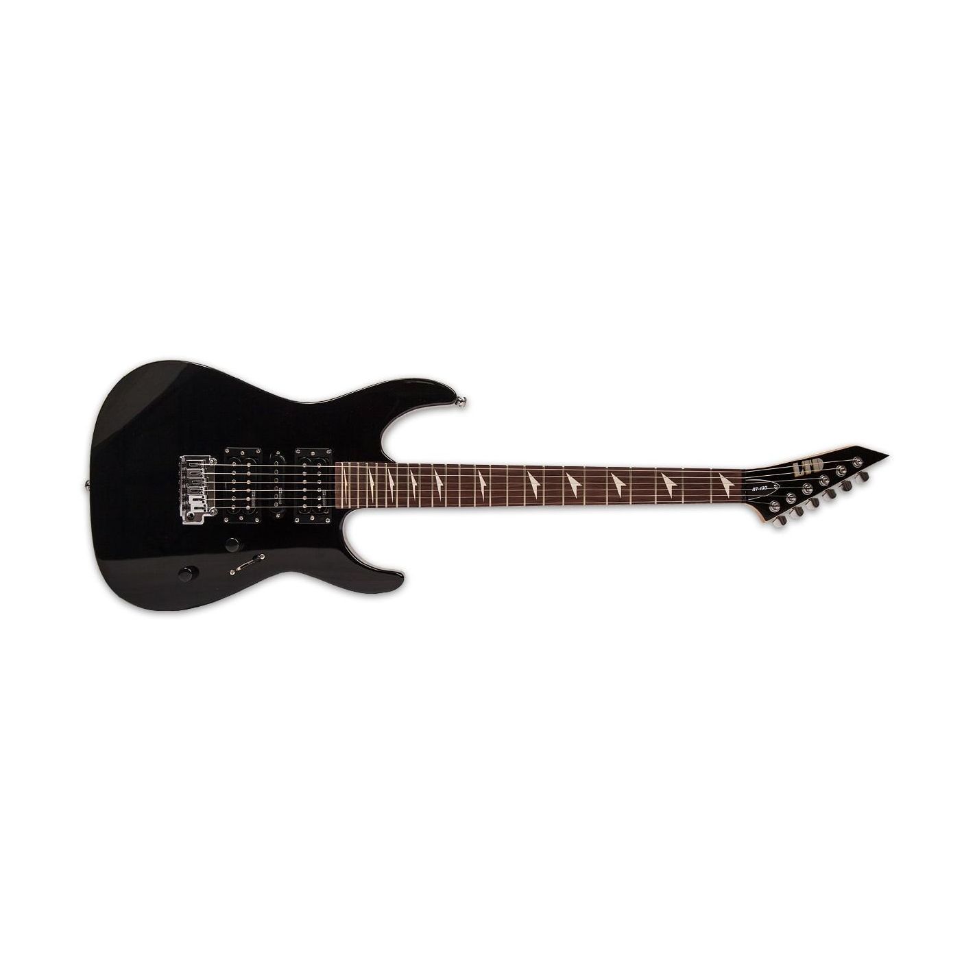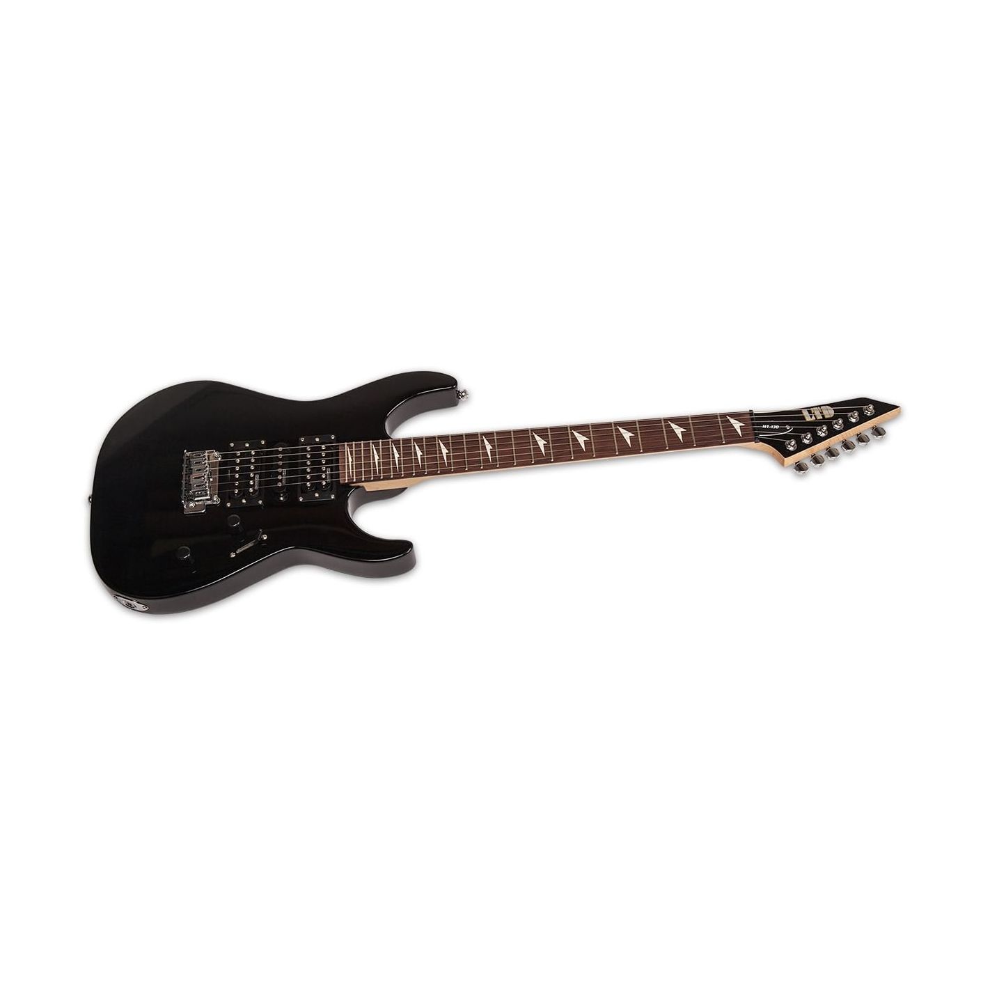 Guitarra eléctrica LTD MT-130 Black - Cuerpo de tilo con construcción bolt-on. Mástil de arce con perfil "Thin U". Diapasón de madera microlaminada con radio de 14" e incrustaciones tipo dot. 24 trastes extra jumbo. Escala de 25,5" (648 mm), cejilla de 42 mm. Pastillas ESP Designed LH-100N (mástil) / LS-100M (medio) / LH-100B (puente), conmutación estándar. Controles de volumen y tono. Selector de 5 posiciones. Puente LTD 2 Pivot. Clavijero LTD. Herrajes cromados.