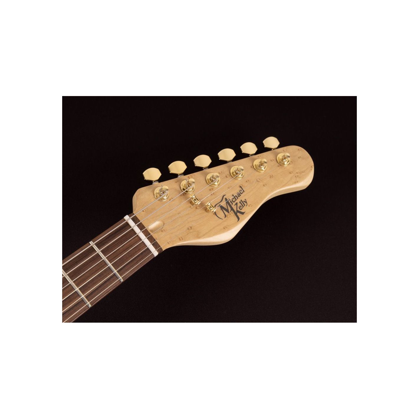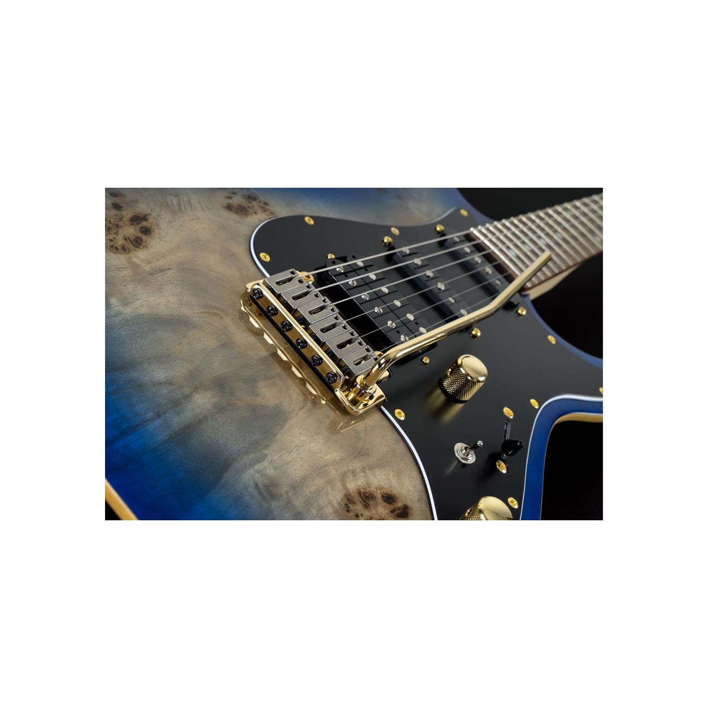 Guitarra eléctrica MK60CBLPRH Custom Collection 60 Burl Ultra. Acabado Blue Burl . Cuerpo de Korina. Mástil de arce con diapasón de Pau Ferro. Perfil del mástil Modern C. Radio compuesto de 10,5" a 16". Escala 25.5". 22 trastes medium jumbo. Pastillas : Rockfield SSC Single Coil (mástil), Rockfield SSC Single Coil (medio) y Rockfield SWC Humbucker (puente). Trémolo flotante de 2 puntos de sujeción. Clavijero MK Diecast. Herrajes dorados. Cuerdas D'Addario XL110 (.10-.46).