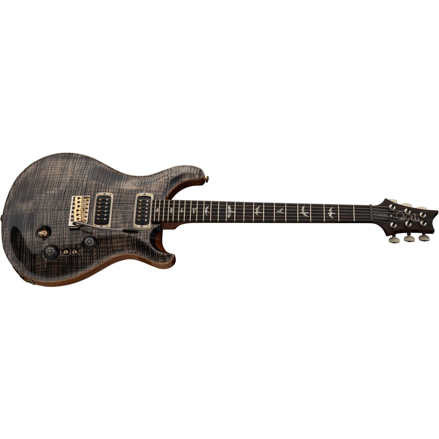 Guitarra eléctrica PRS Custom 24-08, Charcoal Burst - Cuerpo sólido con tapa de arce tallado tipo “violin” y fondo de caoba. Mástil de caoba en una sola pieza con perfil Pattern Thin y escala de 25”, diapasón de palosanto con radio de 10” e incrustaciones “Birds”. 24 trastes. Unión mástil-cuerpo encolada. Pastillas PRS TCI Treble y Bass con controles de volumen y tono, selector de 3 posiciones y dos mini conmutadores EQ de alta frecuencia para mayor versatilidad tonal. Puente PRS Gen III Tremolo y clavijeros bloqueantes PRS Phase III con botones “wing”. Cejuela PRS. Acabado en nitrocelulosa