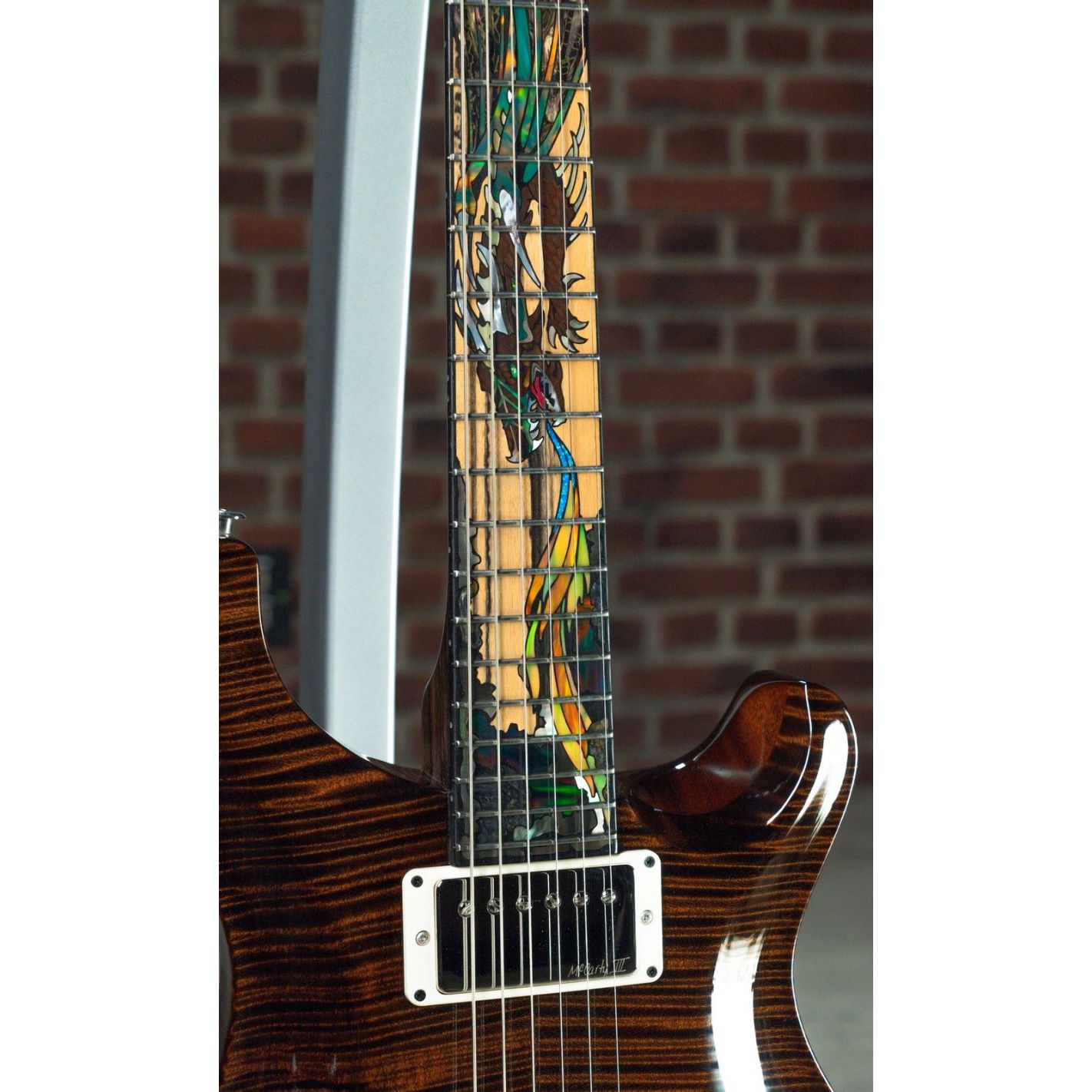 Guitarra Eléctrica PRS Guitars Private Stock 40th Anniversary McCarty Dragon Limited Edition Burnt Chestnut #31. Esta guitarra eléctrica Double Cut presenta un diseño Private Stock, conmemorando el 40 aniversario de McCarty. Es una edición limitada Burnt Chestnut, la número 31. La guitarra incluye detalles específicos de la edición limitada Dragon, aunque no se detallan aquí. Se trata de una guitarra eléctrica de cuerpo sólido con construcción Double Cut. Más información sobre las especificaciones técnicas no está disponible en esta descripción.